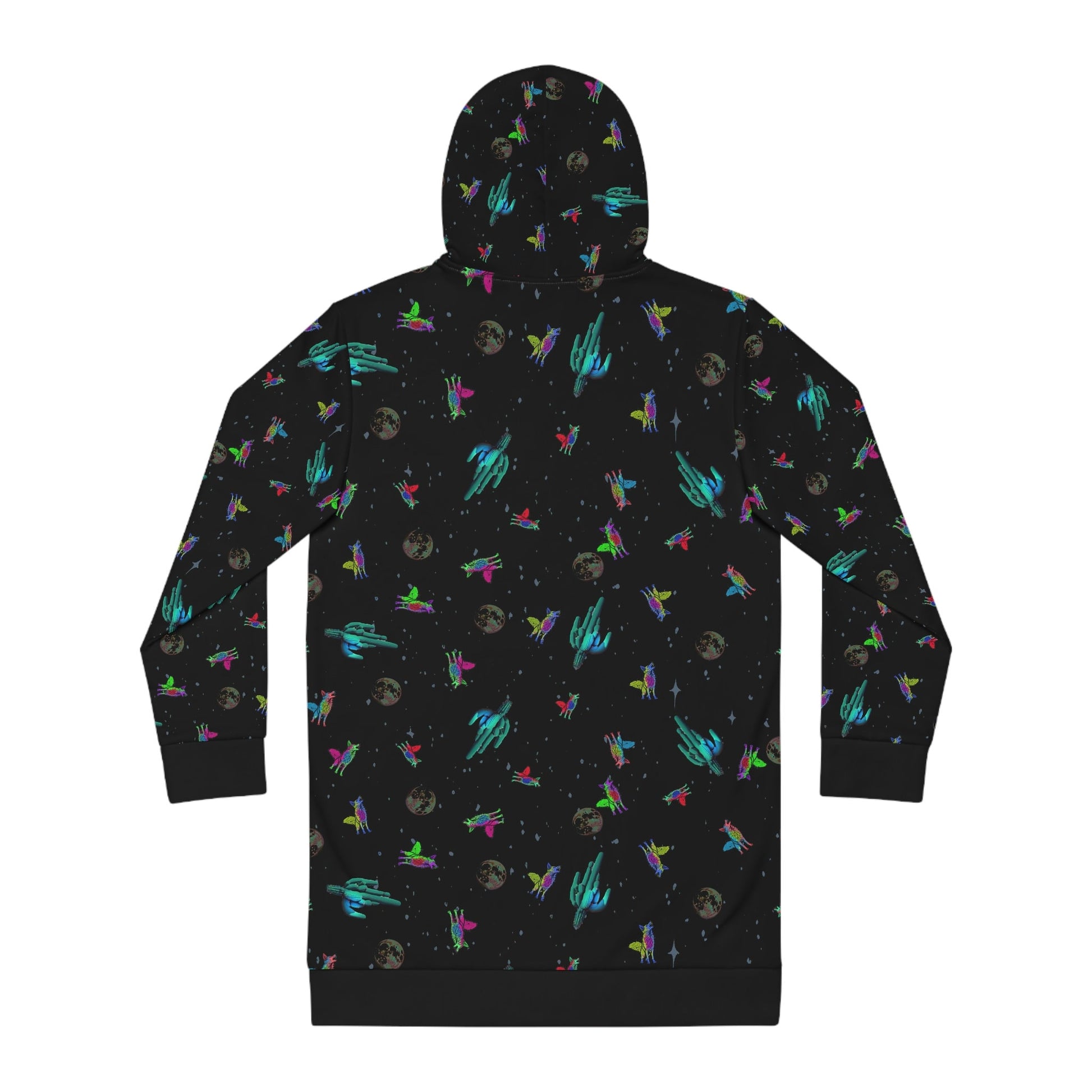 Animal Print Space Hoodie Dress, Coyote Cactus Womens Hoodie Dress, Oversized Hoodie With Pocket, Warm Dress