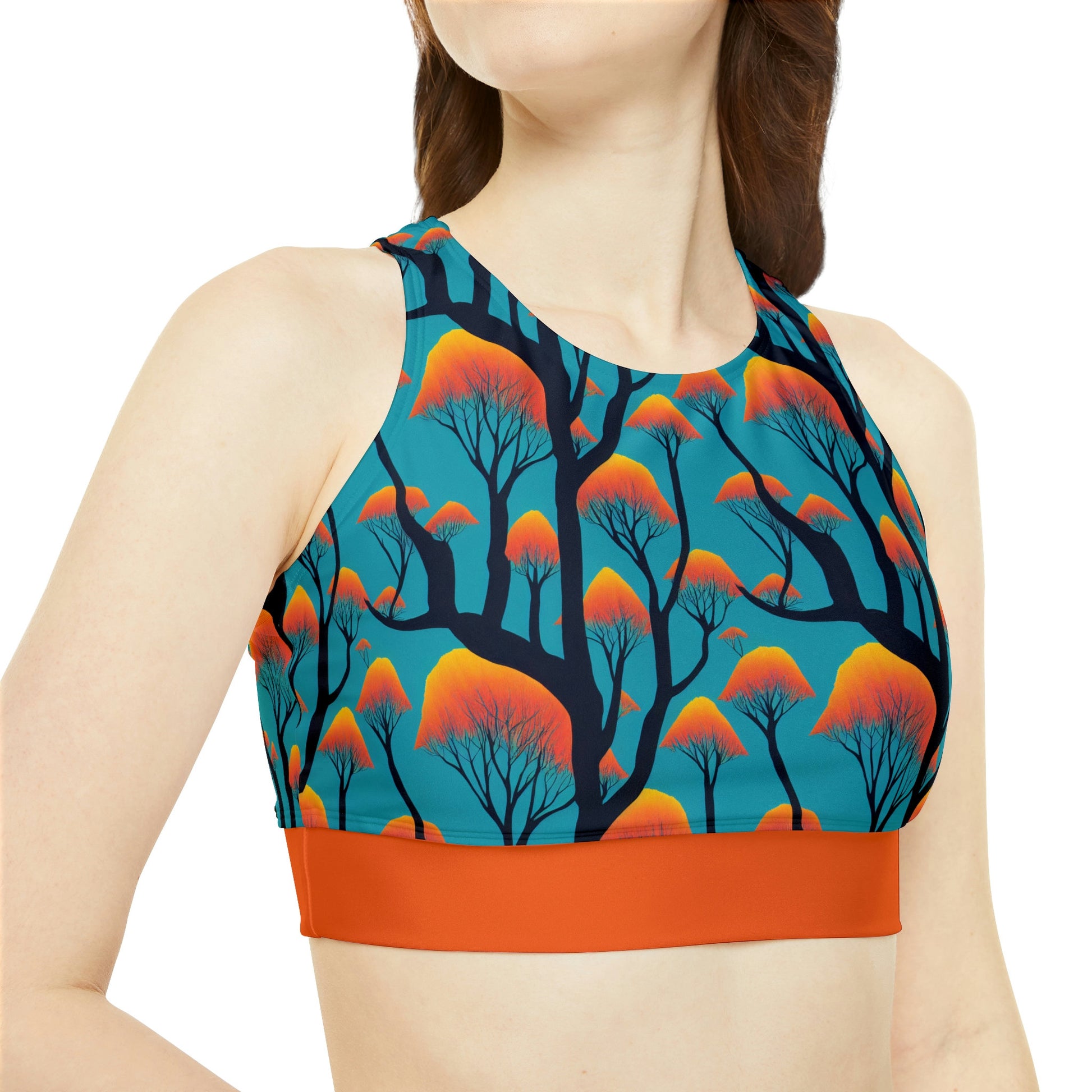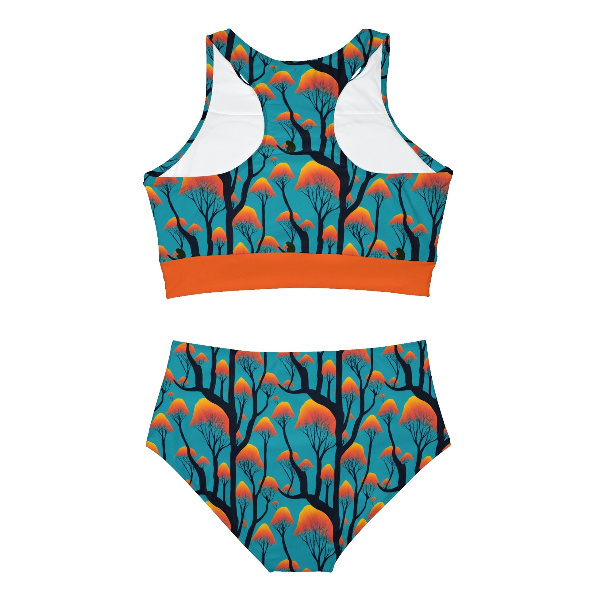 Ape Orange Sports Bikini, Two Piece Bikini Set, Forest Print Sexy Bikini, Sporty Bikini Set, Orange Bikini For Girls