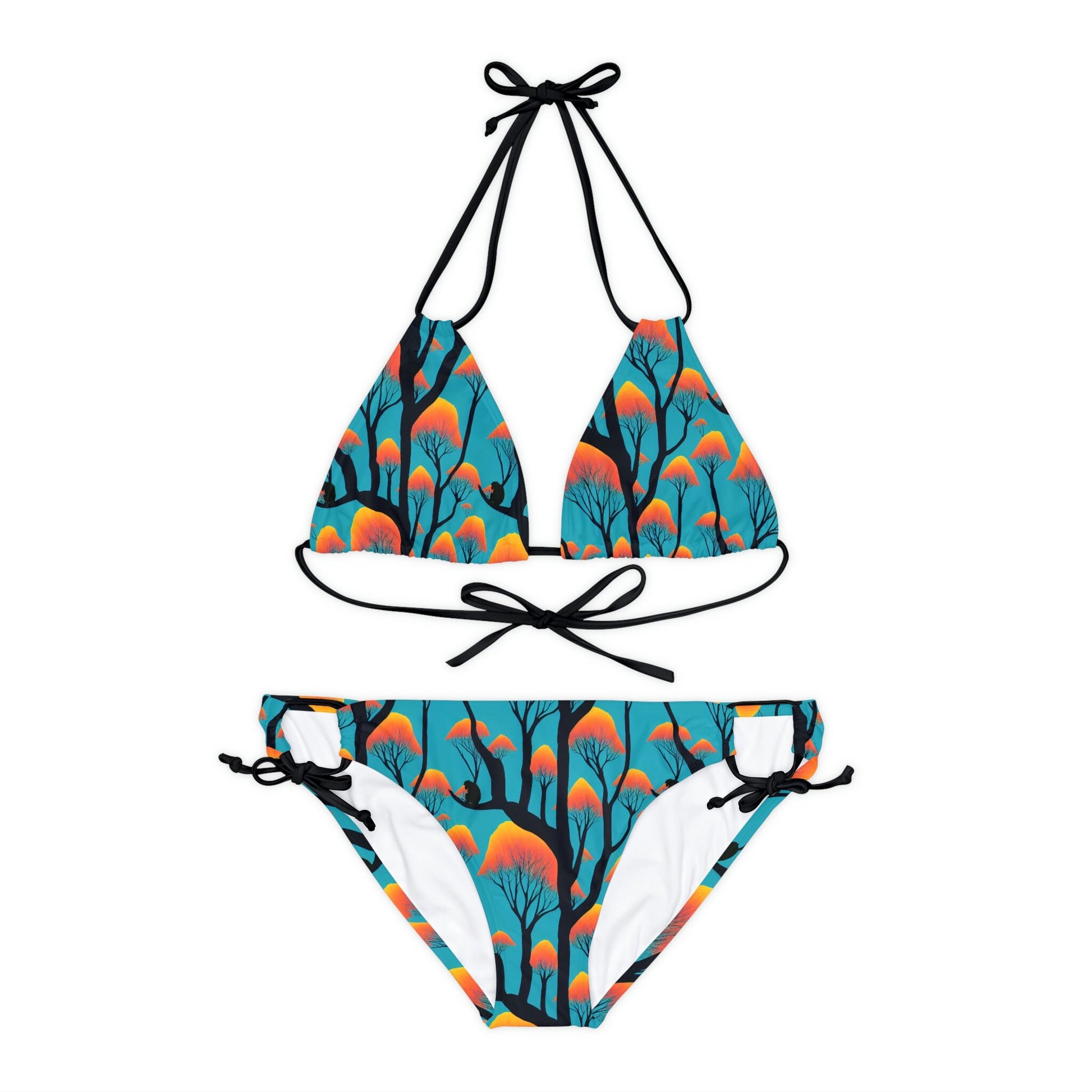 Ape Orange Strappy Bikini, Two Piece Bikini Set, Forest Print Sexy Bikini, Strap Bikini Set, Orange Bikini For Girls