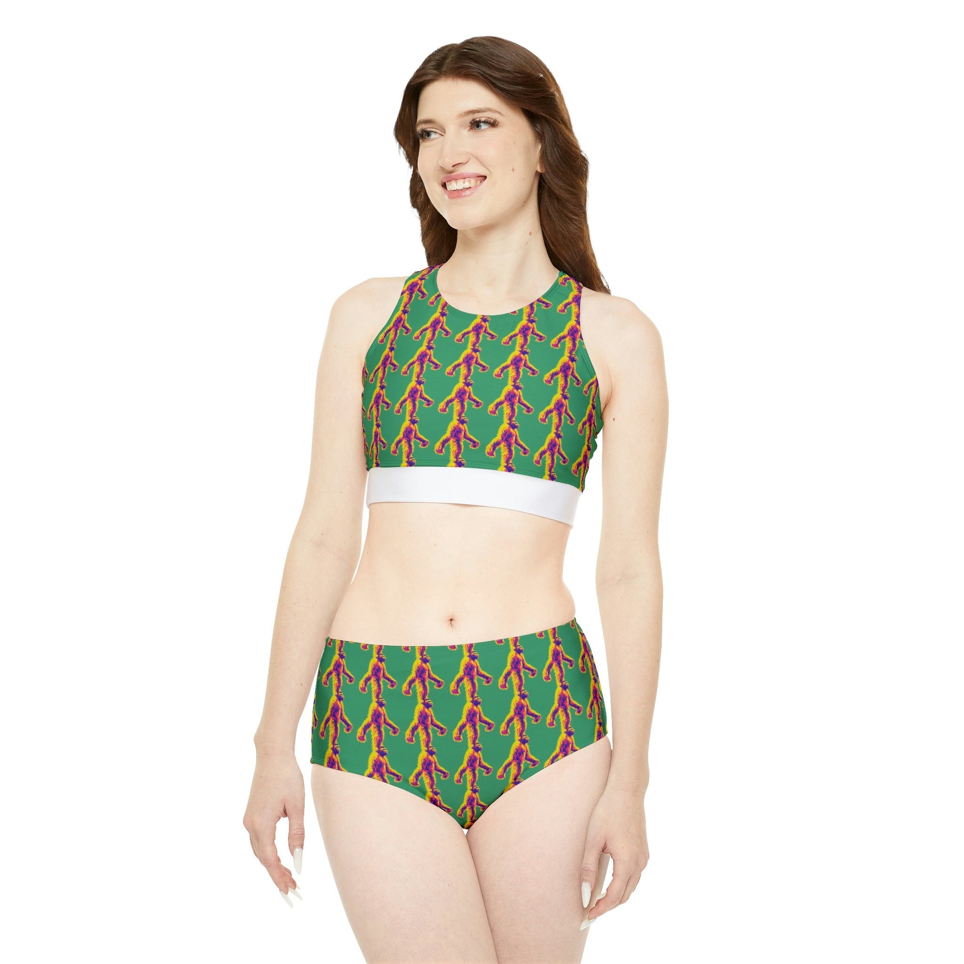 Bigfoot Yeti Sports Bikini, Sasquatch Print High Waisted Bikini, Sporty Bikini, String Bikini Set, Handmade Bikini for Girls
