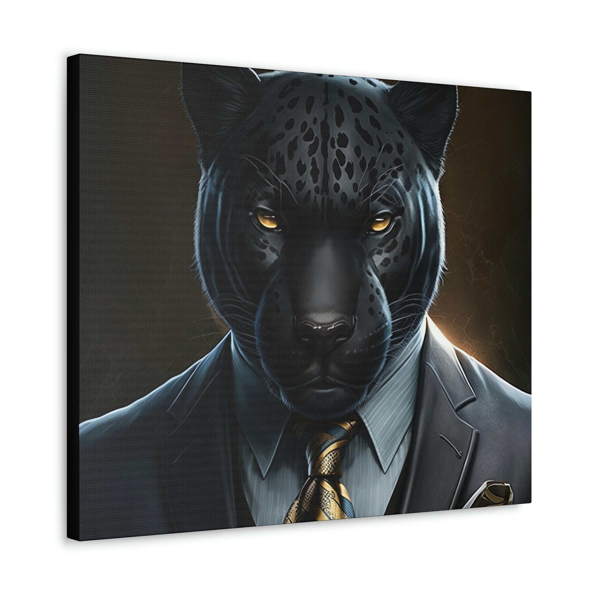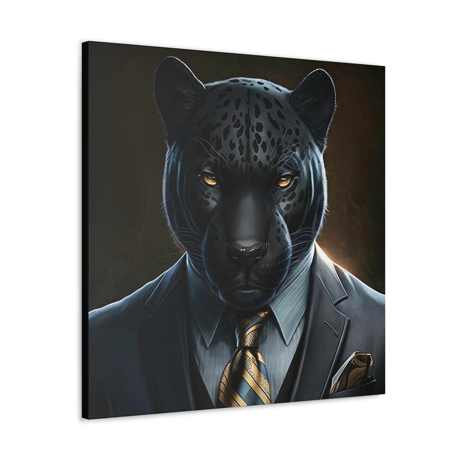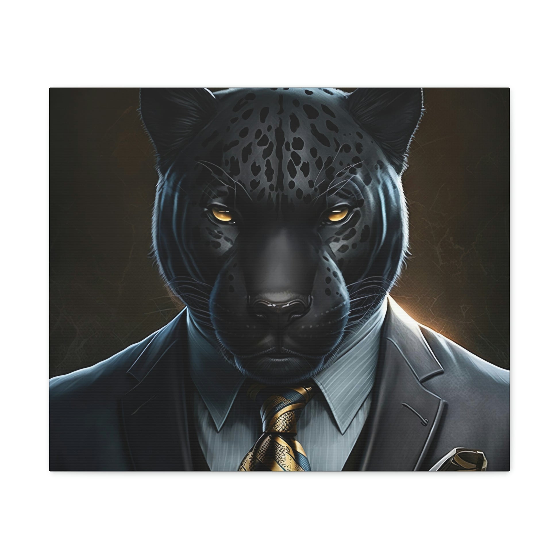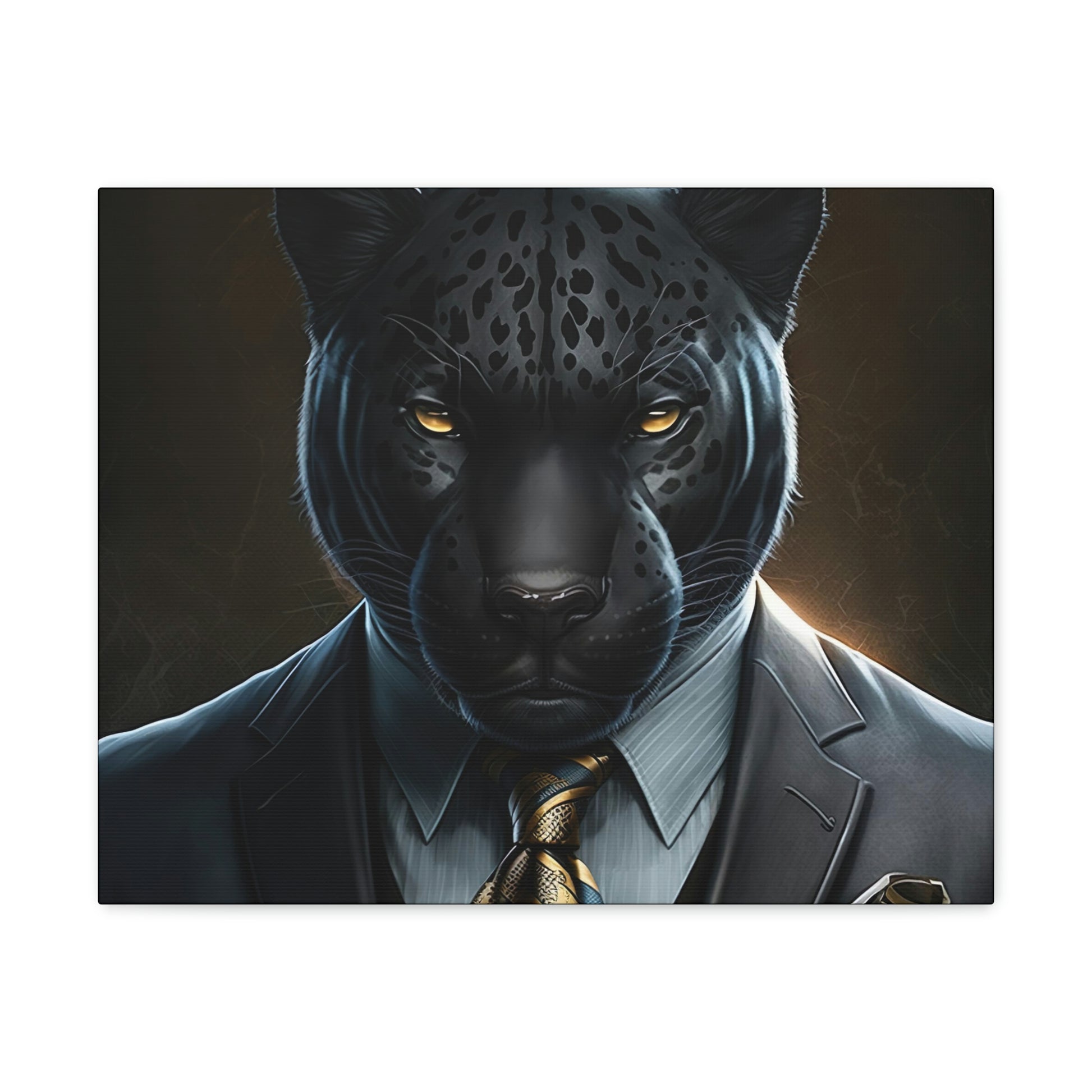 Black Panther in Boss Suit Canvas Portrait will look impressive anywhere in your home and would make the perfect gift for Office, housewarmings, or any occasion at all!