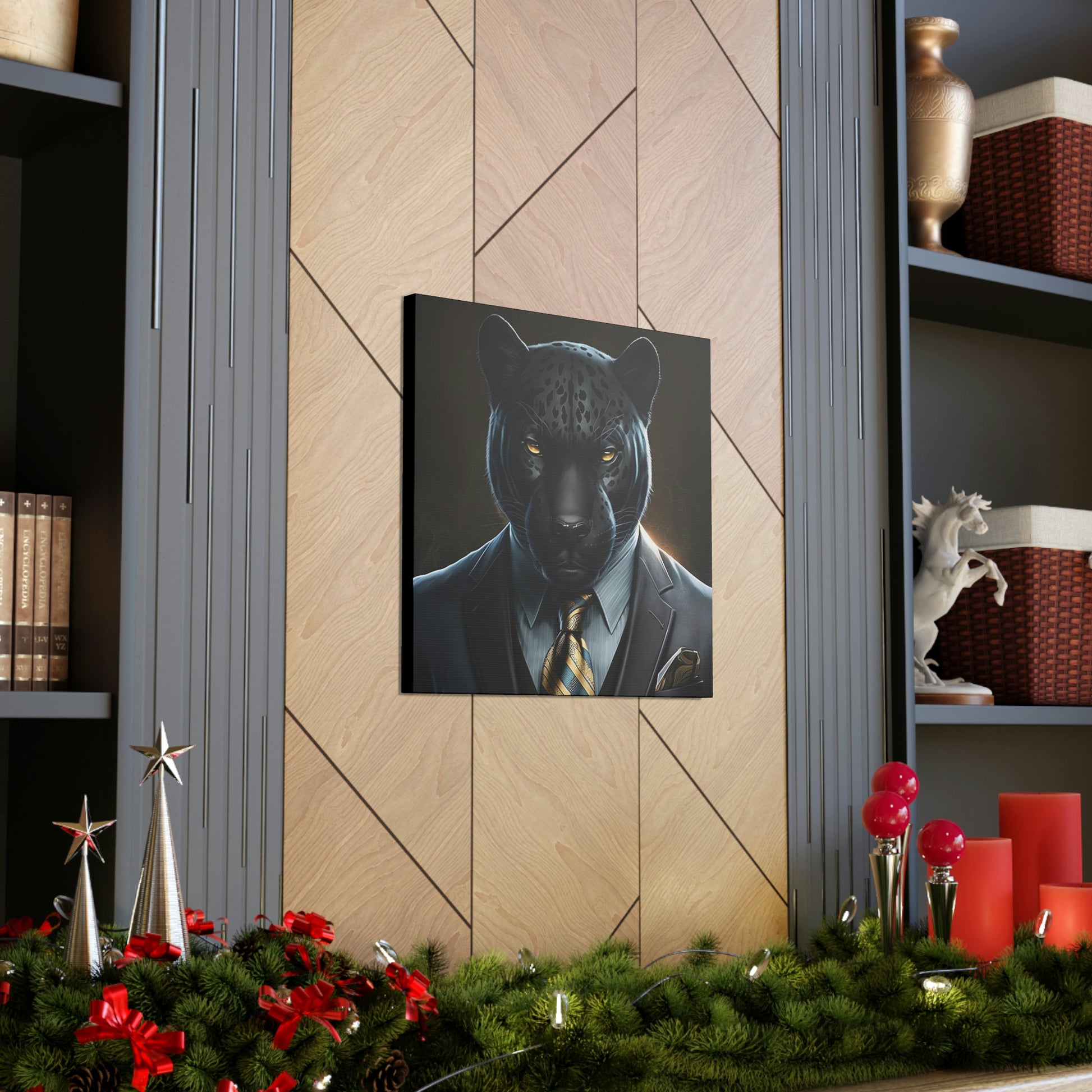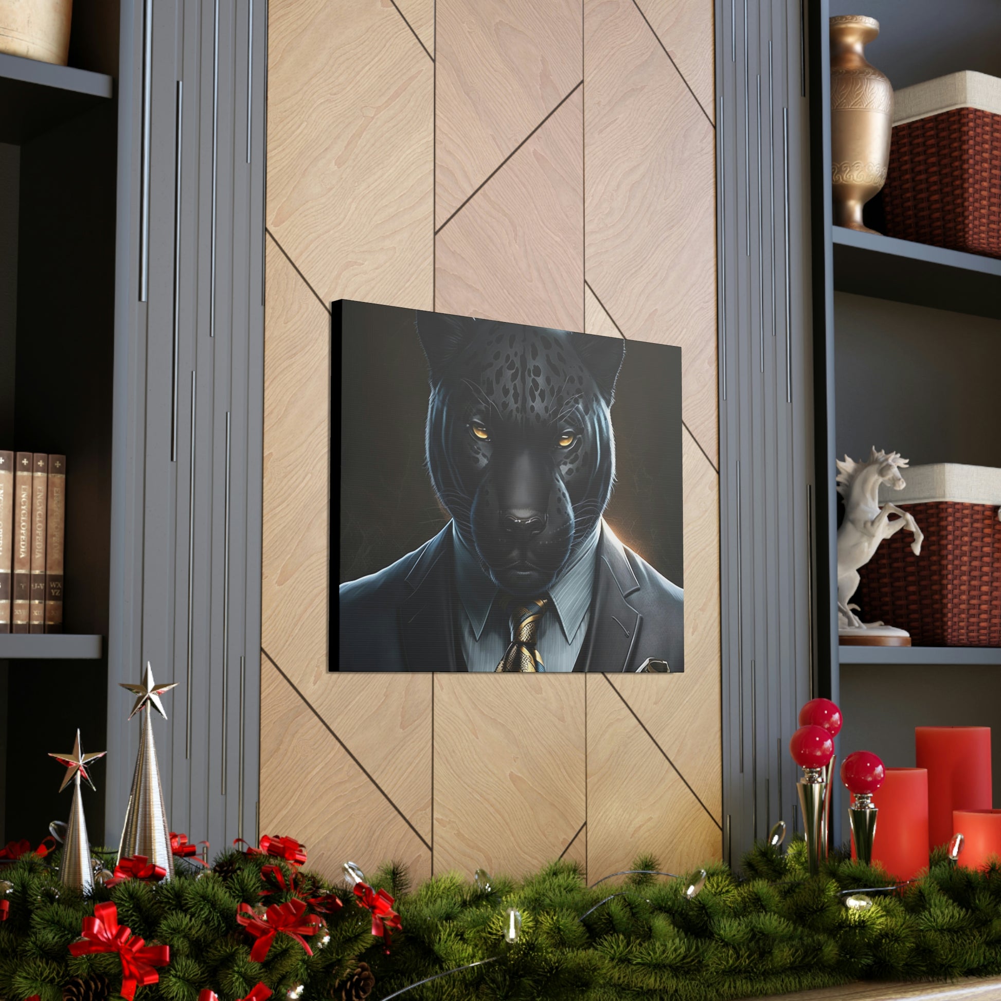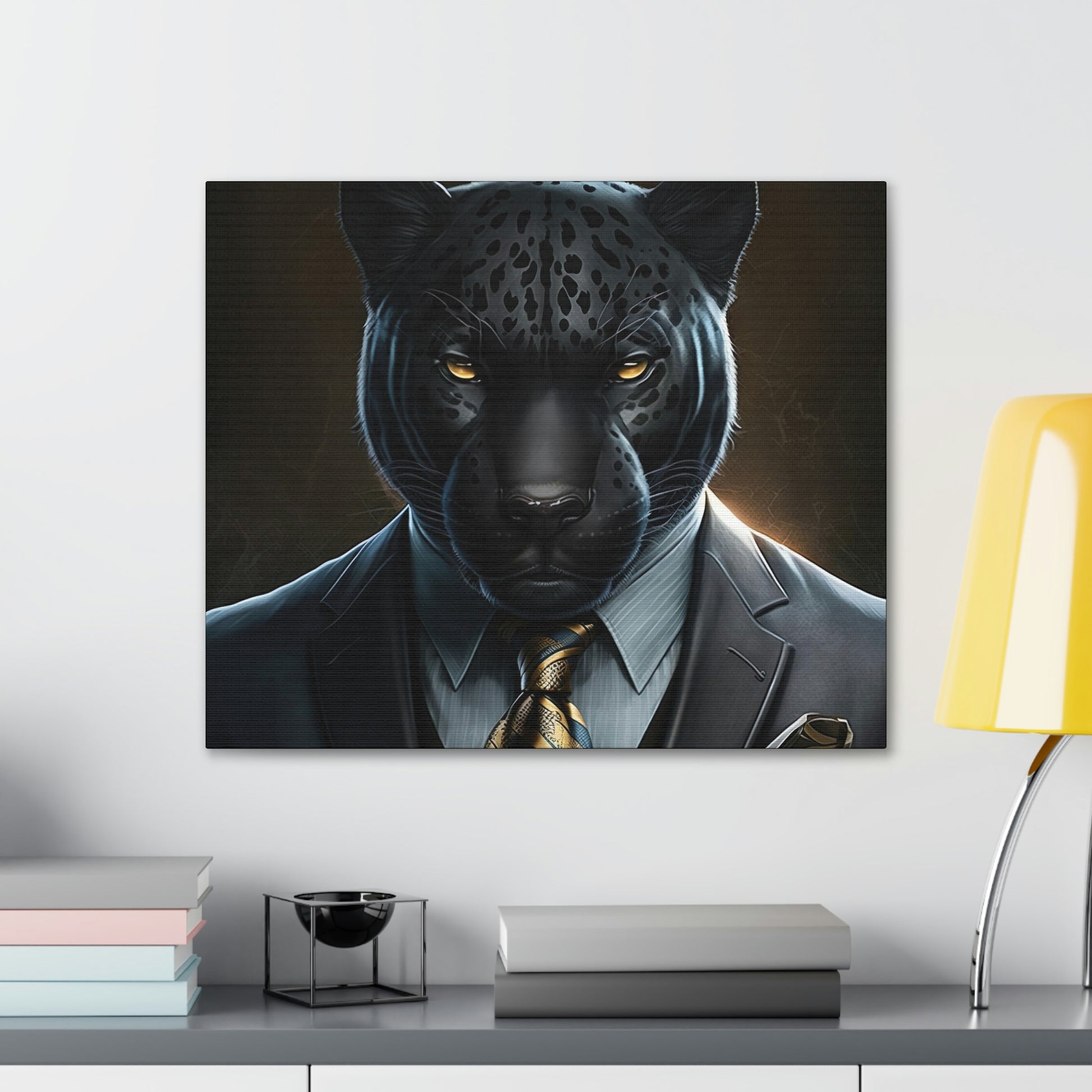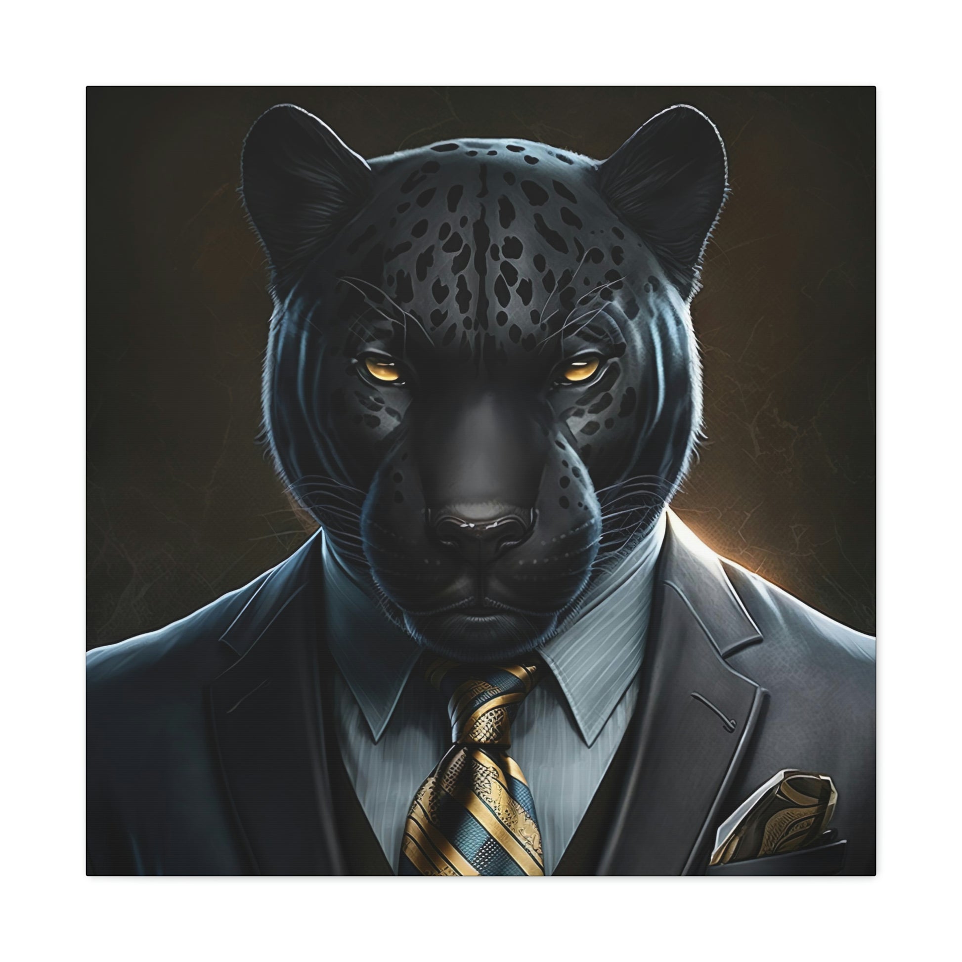 Black Panther in Boss Suit Canvas Portrait will look impressive anywhere in your home and would make the perfect gift for Office, housewarmings, or any occasion at all!