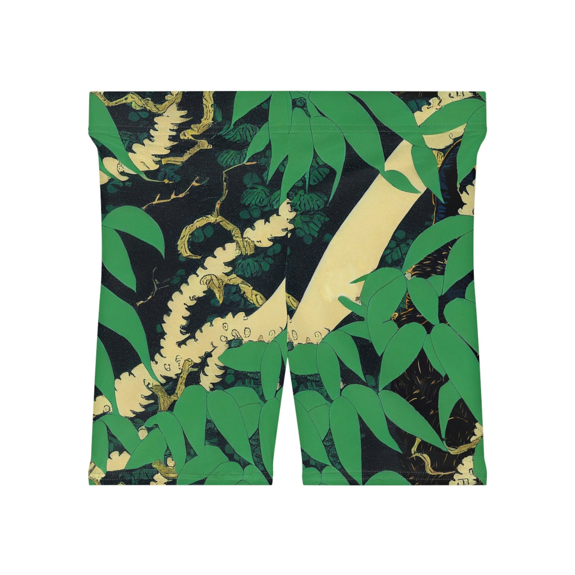 Black Wolf in Jungle Women Biker Shorts, Wolf Clothing Graphic Shorts, Animal Clothing Gym Shorts, Sexy Booty Shorts