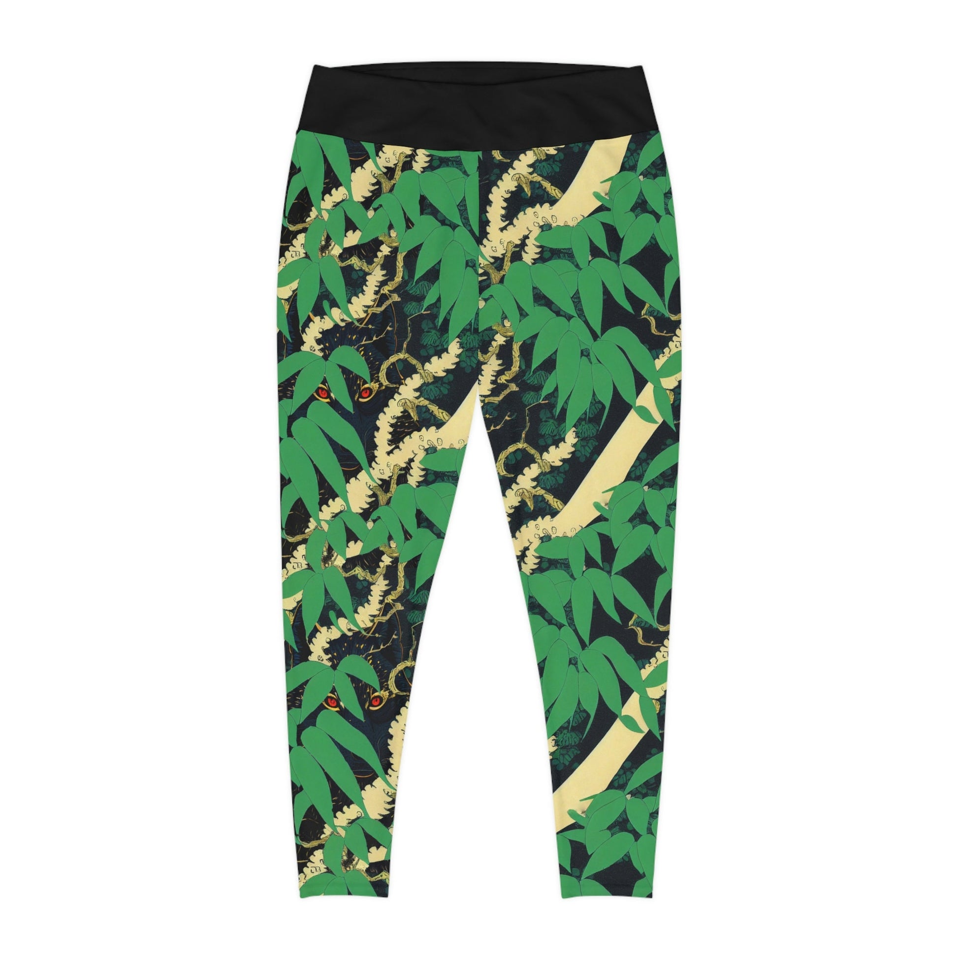 Black Wolf Jungle Plus Size Leggings, High Waist Leggings, Leaf Spandex Leggings, Yoga Leggings, Fitness Leggings