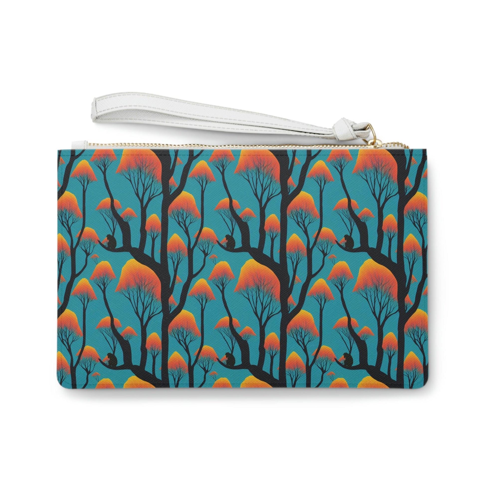 Blue Orange Purse, Orange Forest Clutch Bag, Vegan Leather Wedding Clutch, Make Bag For Women, Bridesmaid Gift Bag