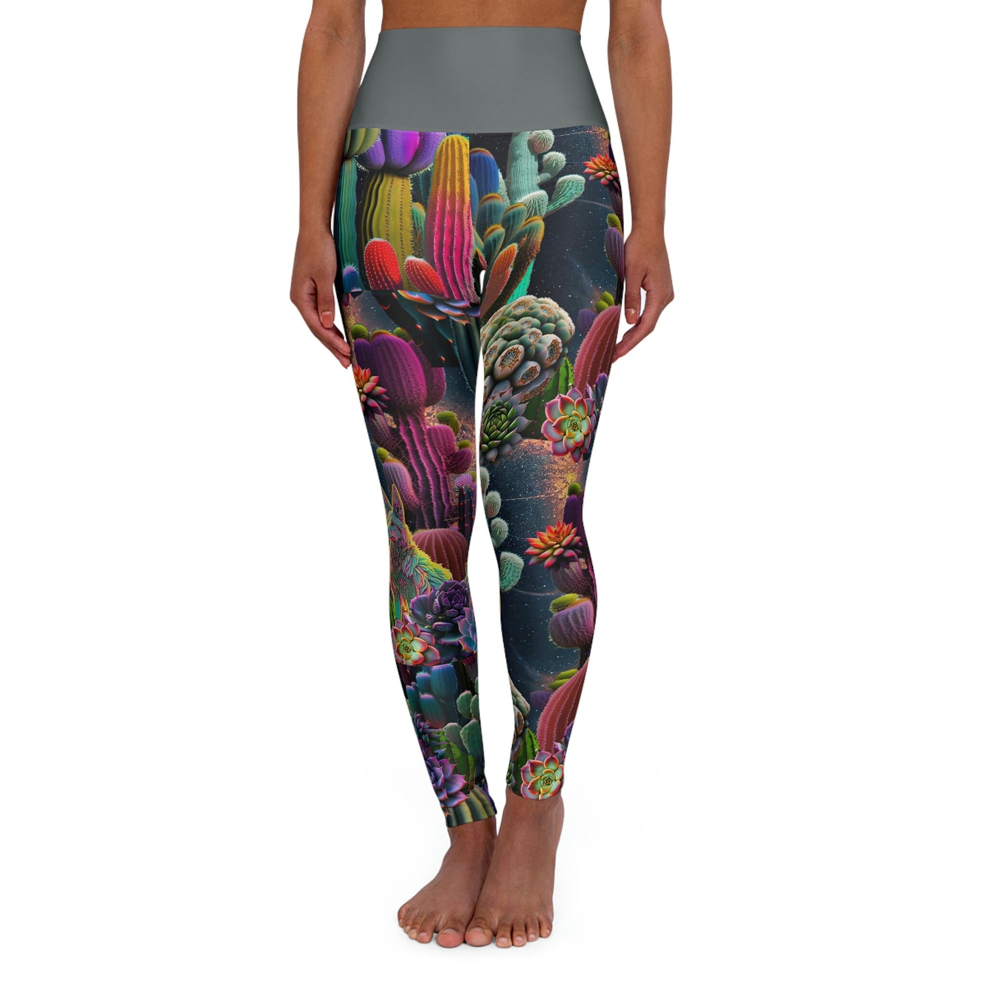 Coyote Cactus Dream High Waisted Yoga Leggings Cryptid Creatures Co