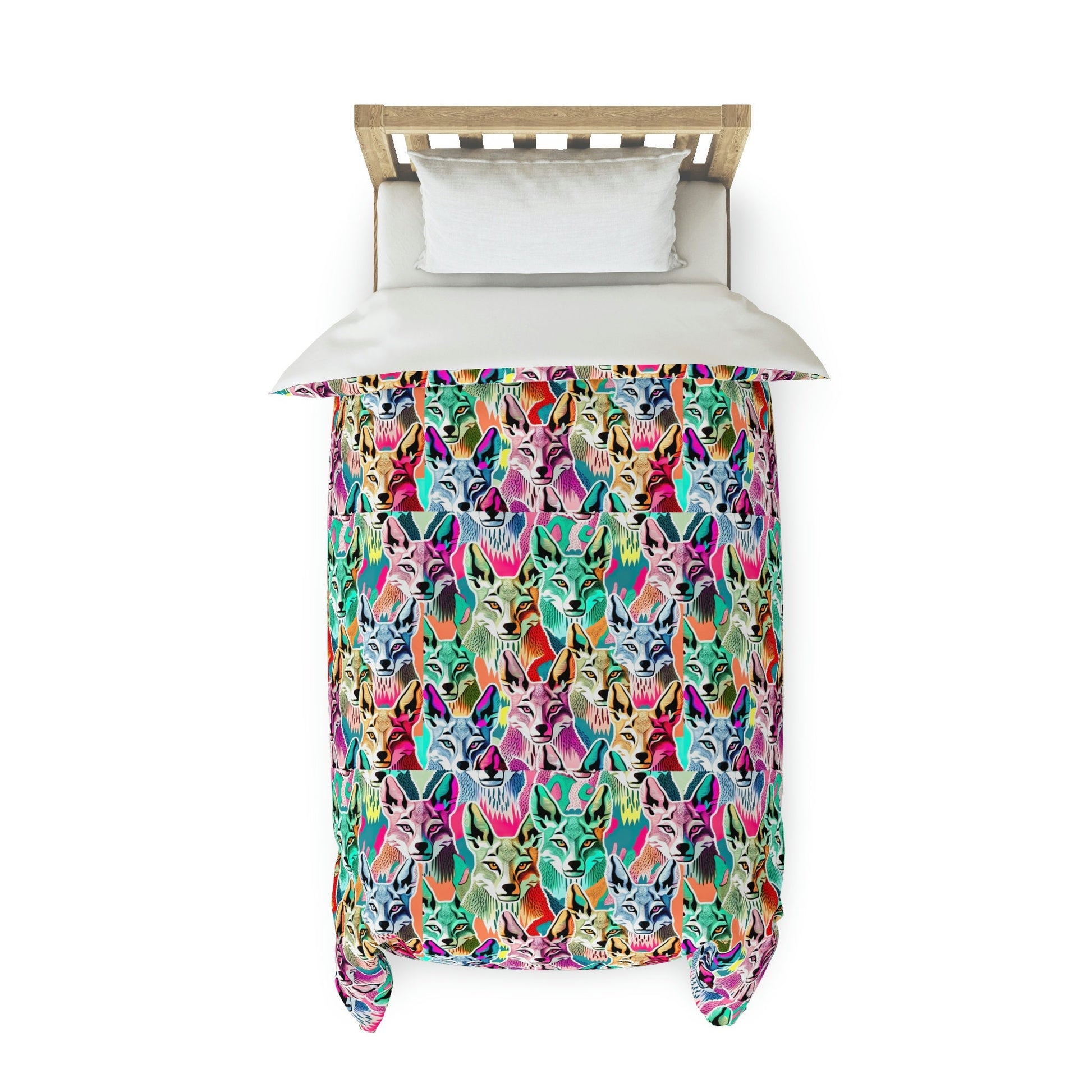 Coyote Colorful Duvet Cover, Wolf Printed Duvet Cover, Animal King Size Duvet, Designer Duvet Cover, Animal Lover Gift
