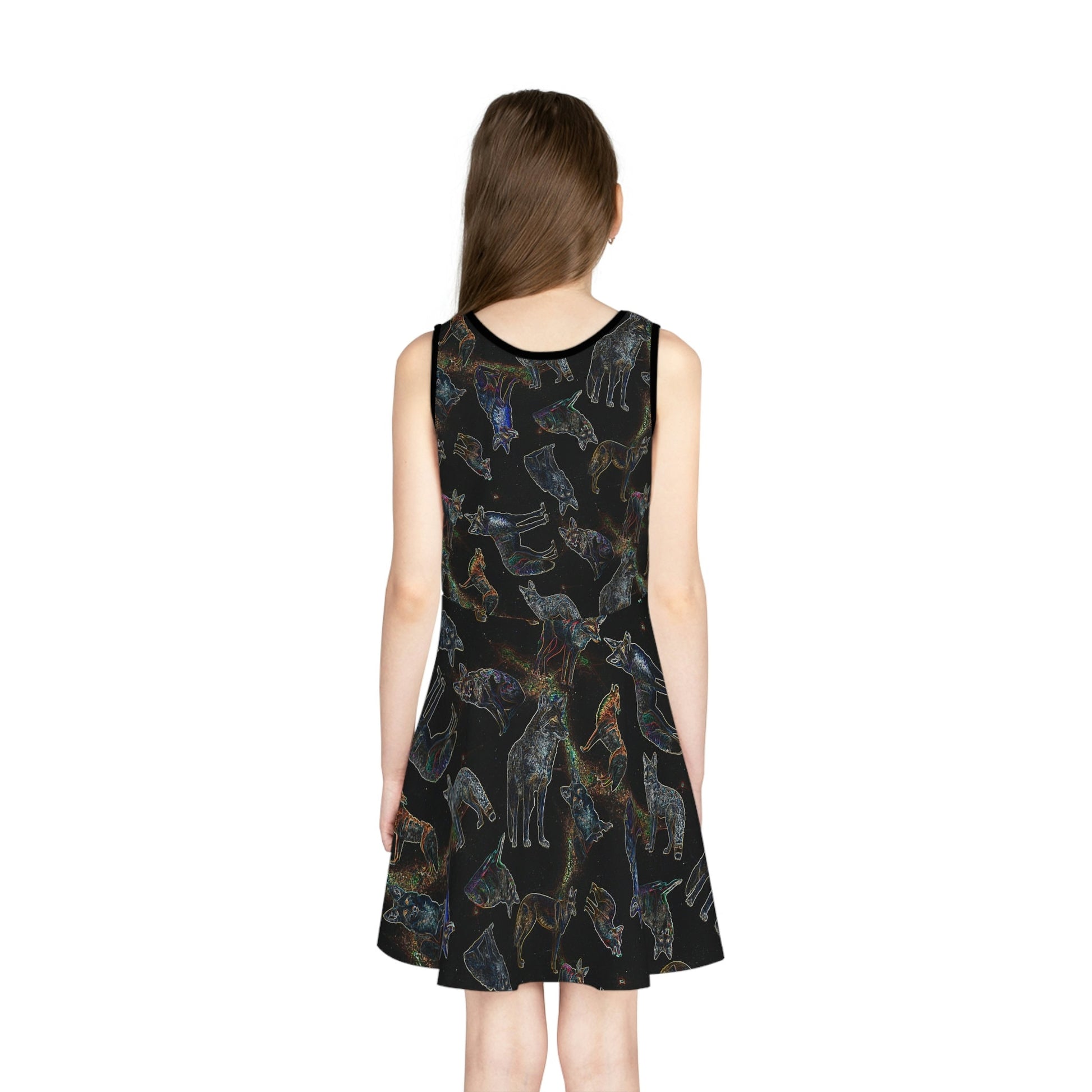 Coyote Galaxy, Girls' fashion, Sleeveless sundress, Women's fashion, Stylish pattern, High-quality, Comfortable fit, Breathable fabric, Unique design, Casual wear, Trendy, Galaxy-inspired, Unique art
