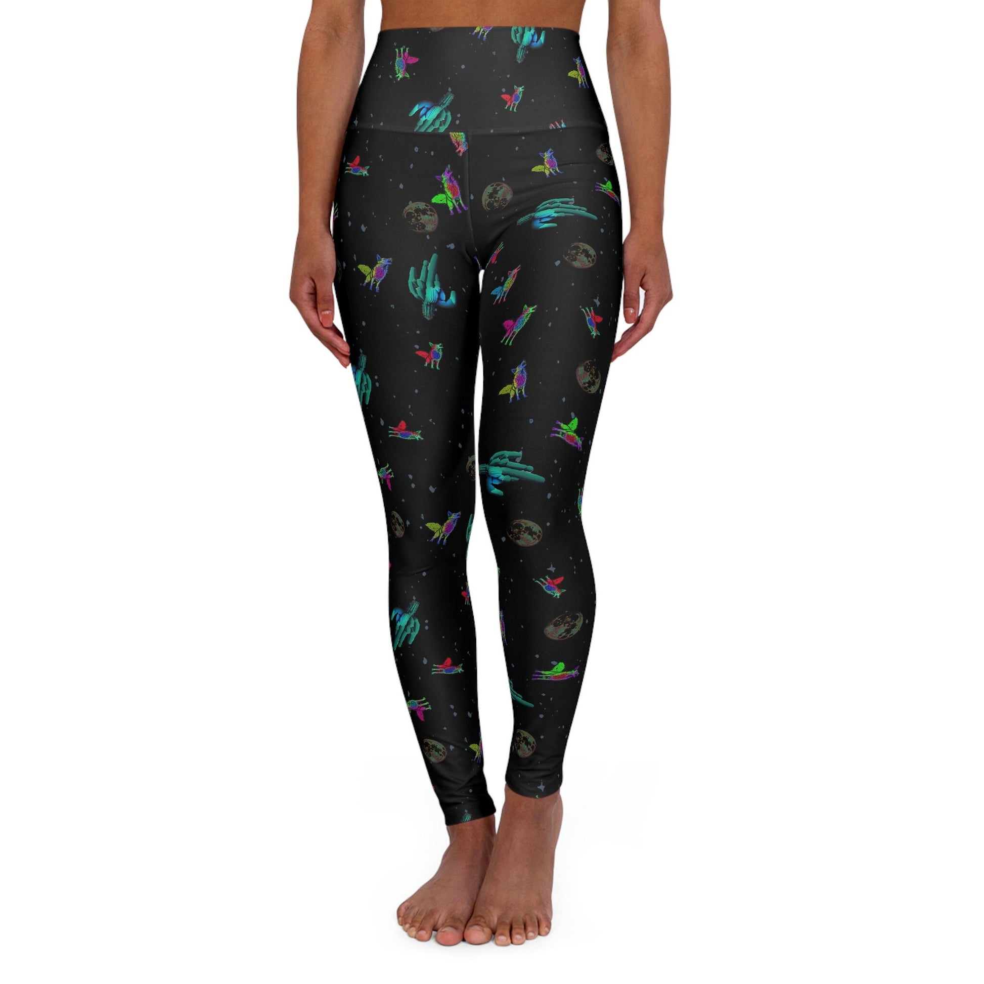 These skinny fitting Coyote Space Cactus High Waist Leggings will take you from workout to store run in comfort and style. these leggings provide a soft and stretchy fit that moves with your body for maximum flexibility and comfort. The versatile design makes them perfect for everything from casual wear to fitness activities.