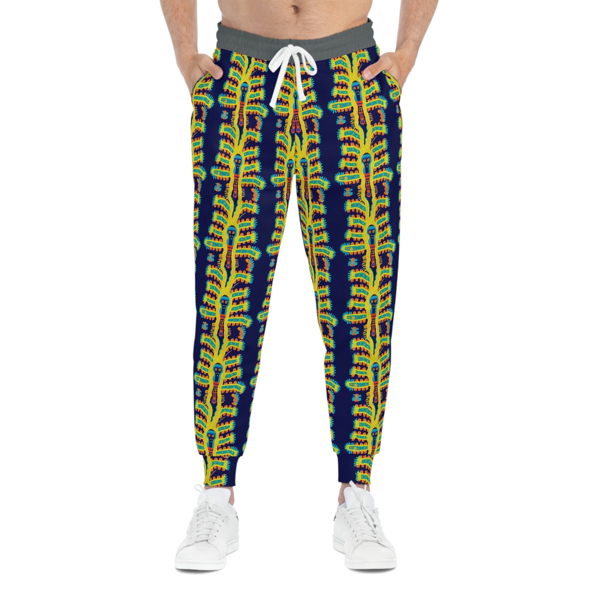 Cryptid Native Huichol Style Mens Joggers, Athletic Clothing High Waisted Joggers, Mens Yoga Pants, Comfy Workout Pants