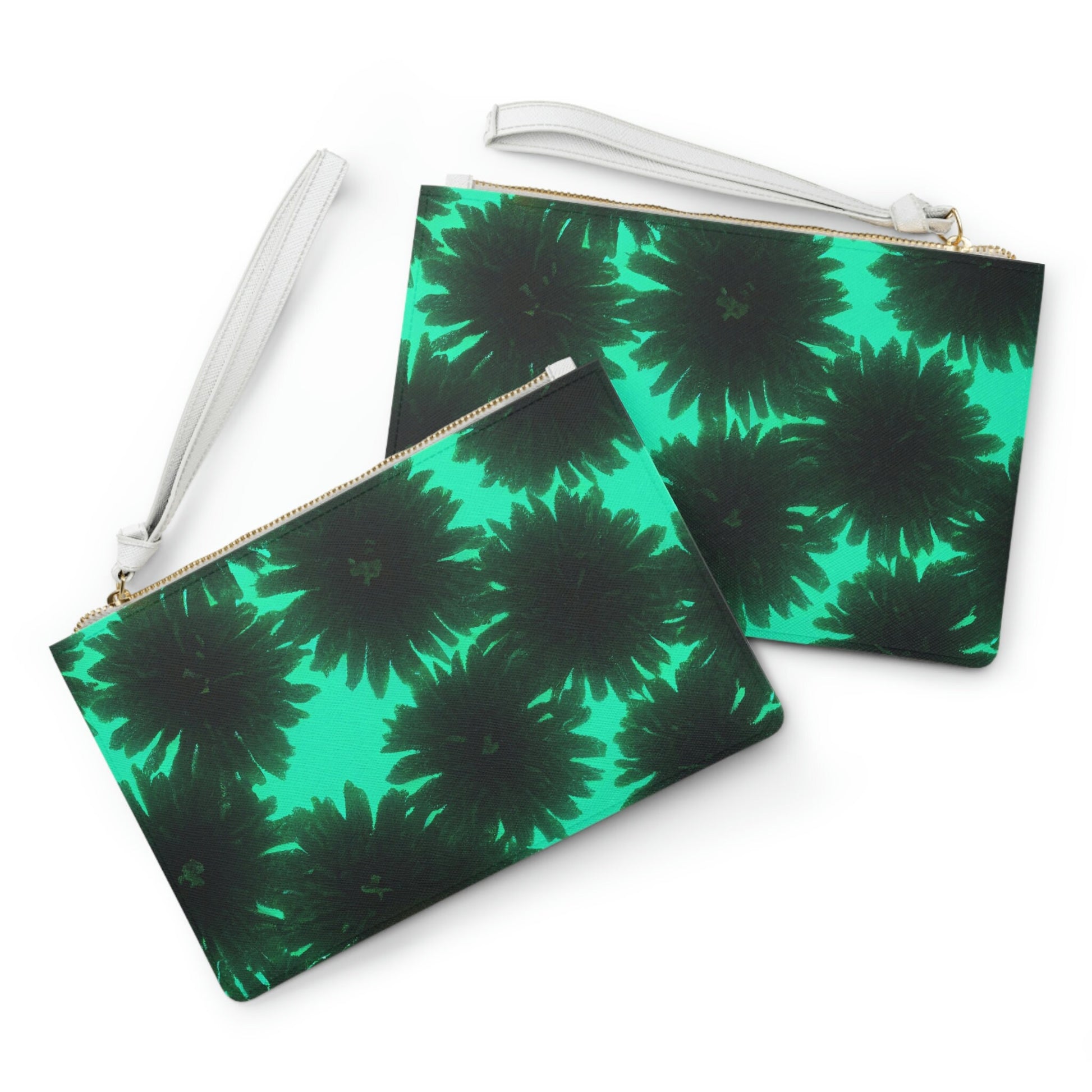 Floral Clutch Bag, Flowers Aqua Green Clutch Bag, Make Up Clutch Bag For Women, Bridal Party Bags, Vegan Leather Bag