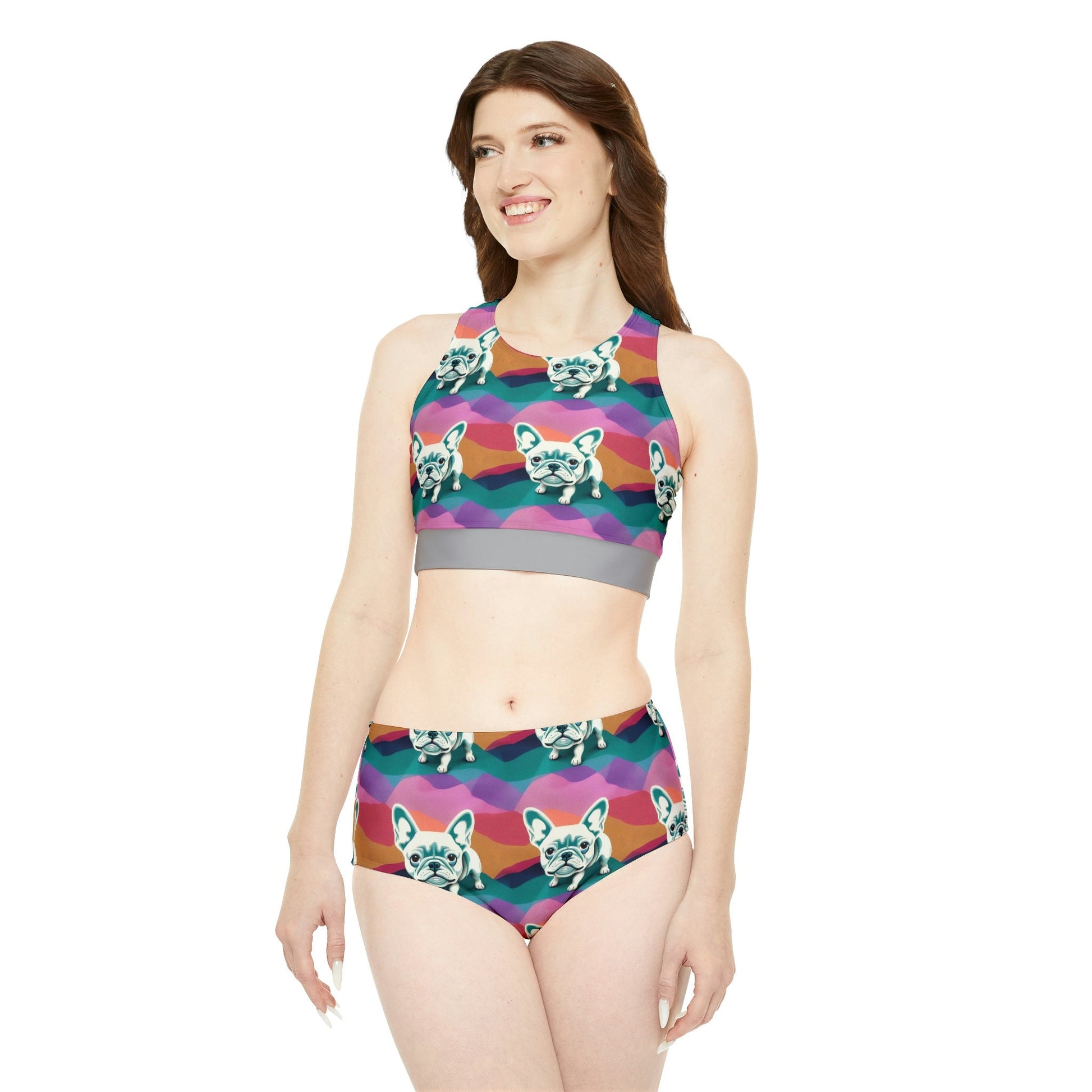 French Bulldog High Waisted Bikini Set is made with recycled fabrics so you can feel good about your purchase! This Sporty Bikini Set has pads that can be removed easily and is high-rise so you can feel comfortable doing whatever you love.