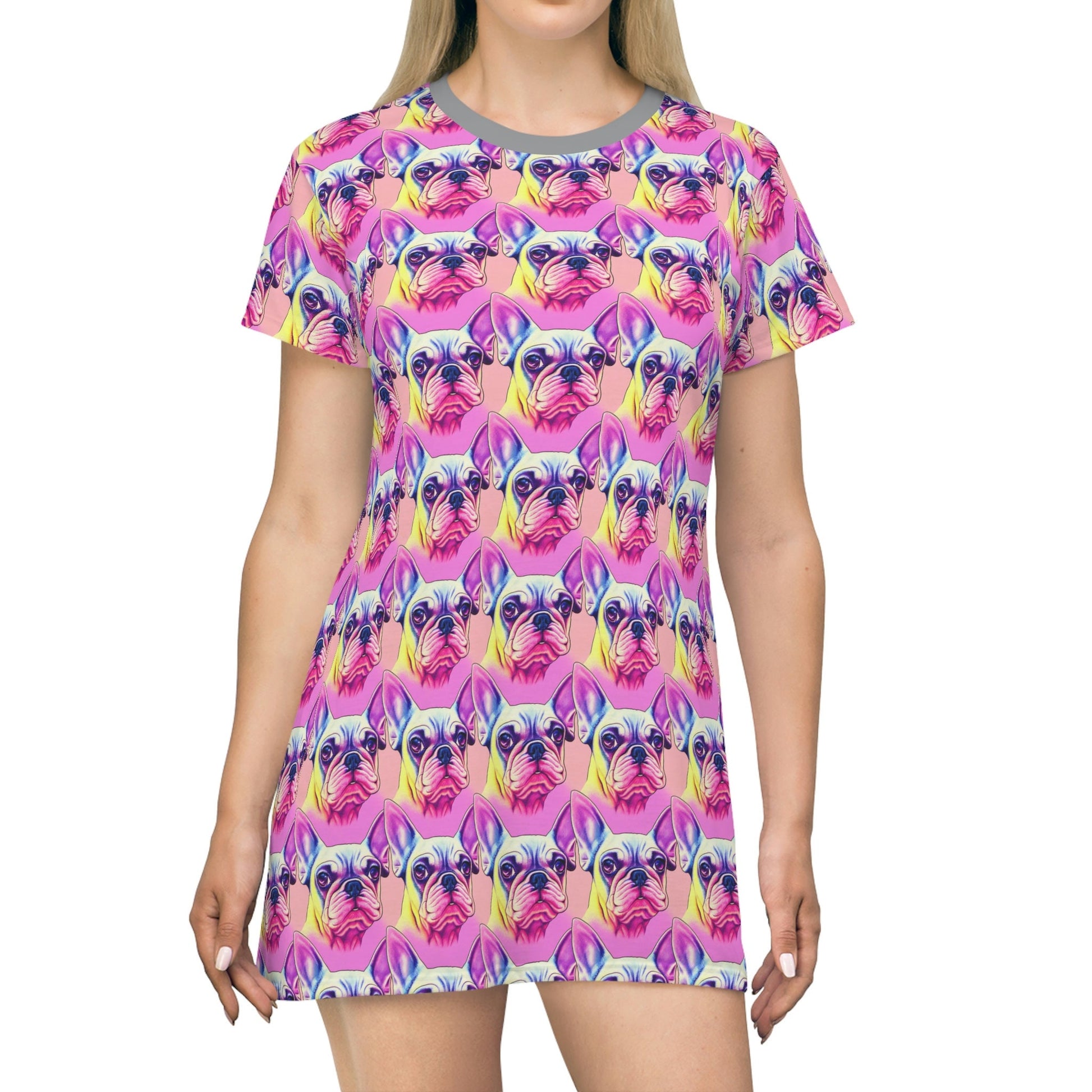 French Bulldog Oversized Tshirt Dress, Aesthetic Dog Tshirts Dress, Women Summer Tshirt, Plus Size Animal Tshirt Dress