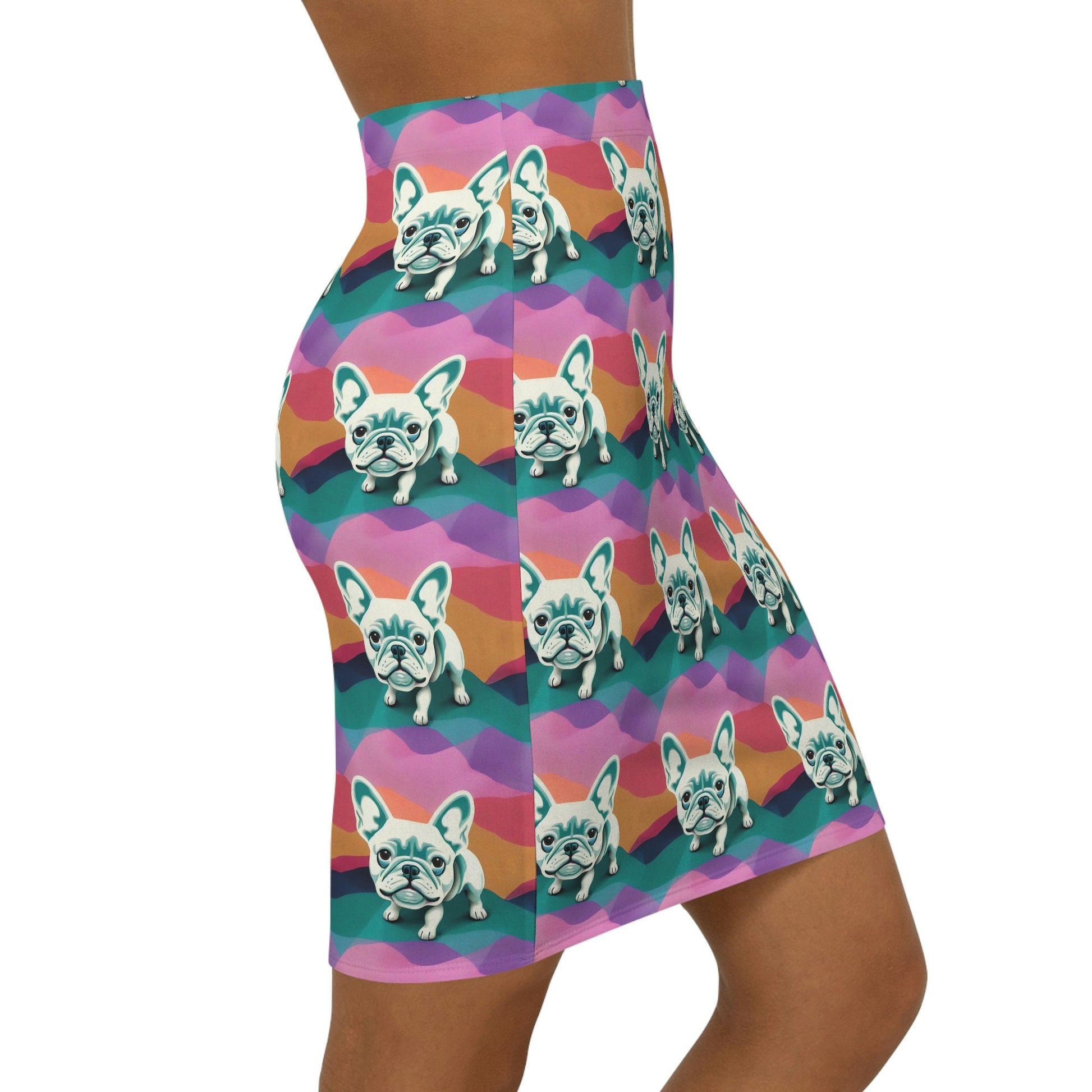 French Bulldog Pencil Skirt, Animal Print Spandex Skirt, Pastel Colors Skirt, Bulldog Pattern Mini Skirt, Handmade Pop Art Skirt