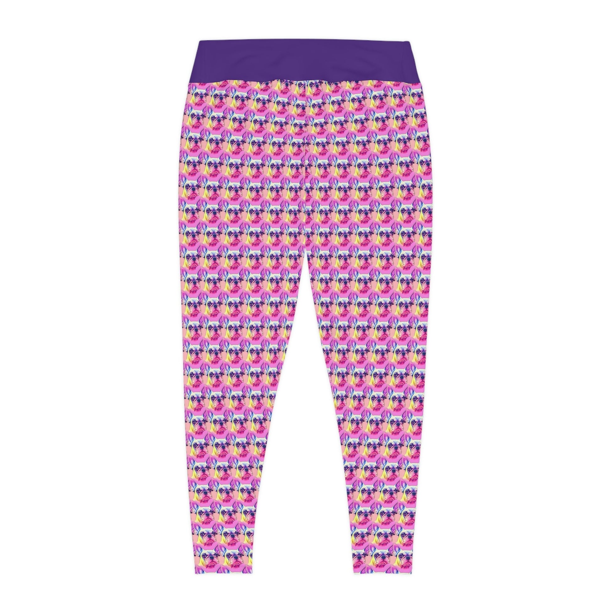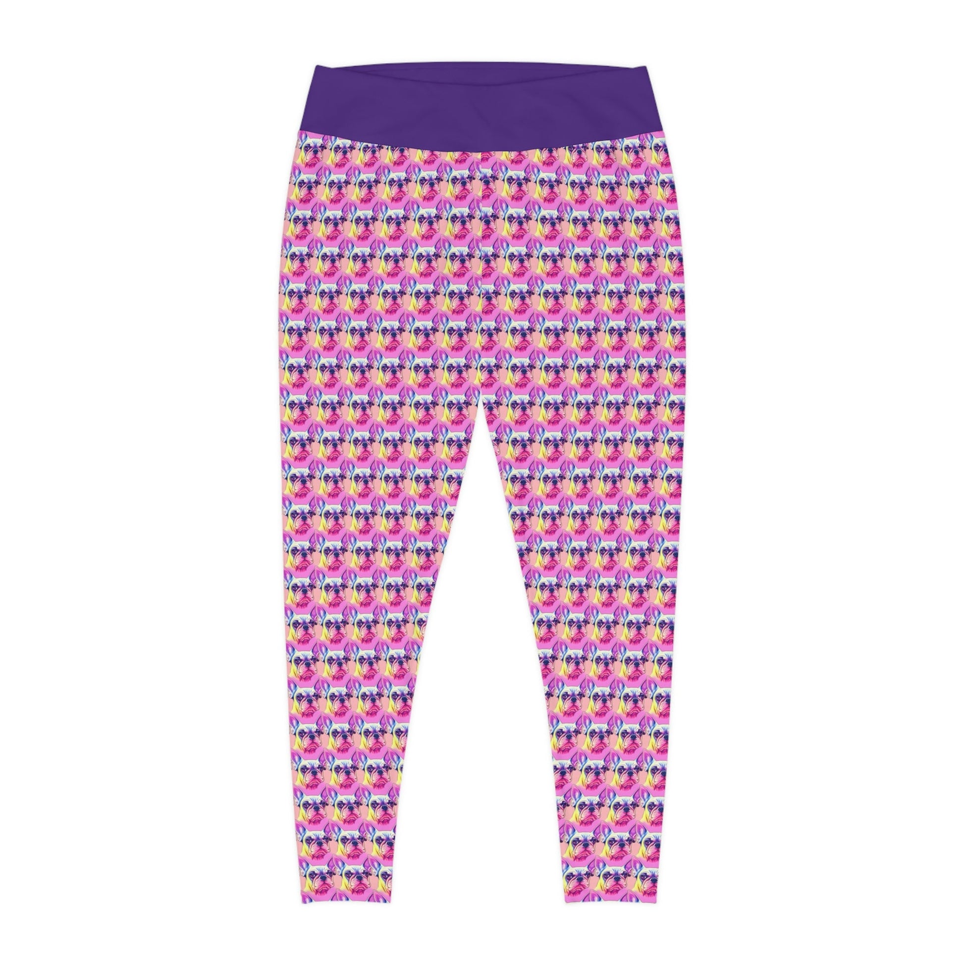 French Bulldog Plus Size Leggings, Workout Yoga Leggings, High Waist Purple Leggings, Fitness Leggings, Animal Leggings