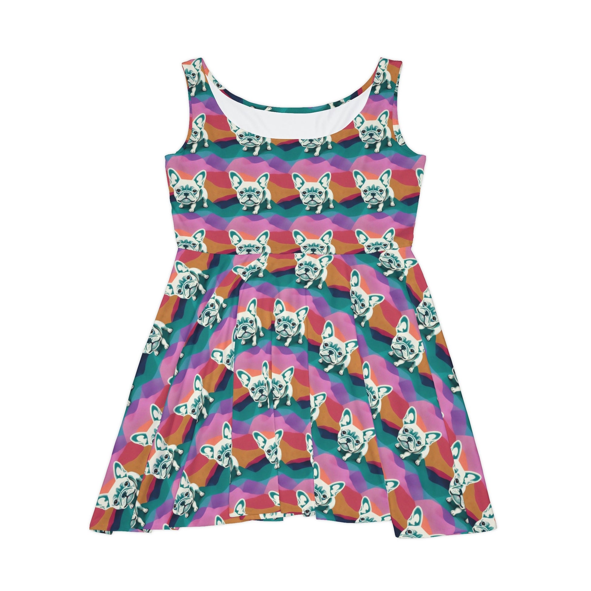 French Bulldog Skater Dress, Dog Pattern Sleeveless Dress, Pastel Colors Skater Dress for Women, Handmade Tank Dress