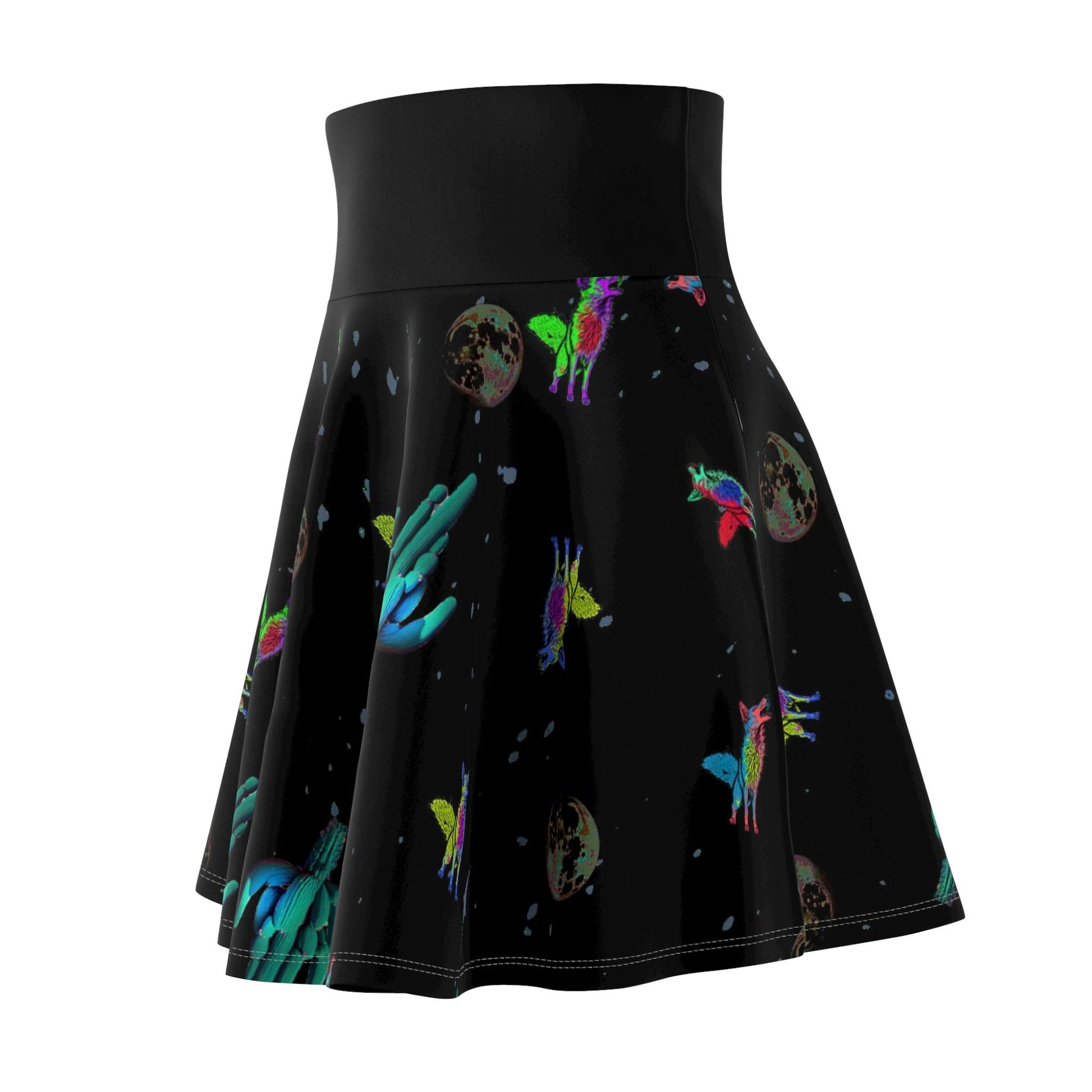 Galaxy Skater Skirt, Space Print Women's Skirt, Handmade Coyote Skater Skirt, Black Skirt, High Waist Skirt, Cactus Apparel