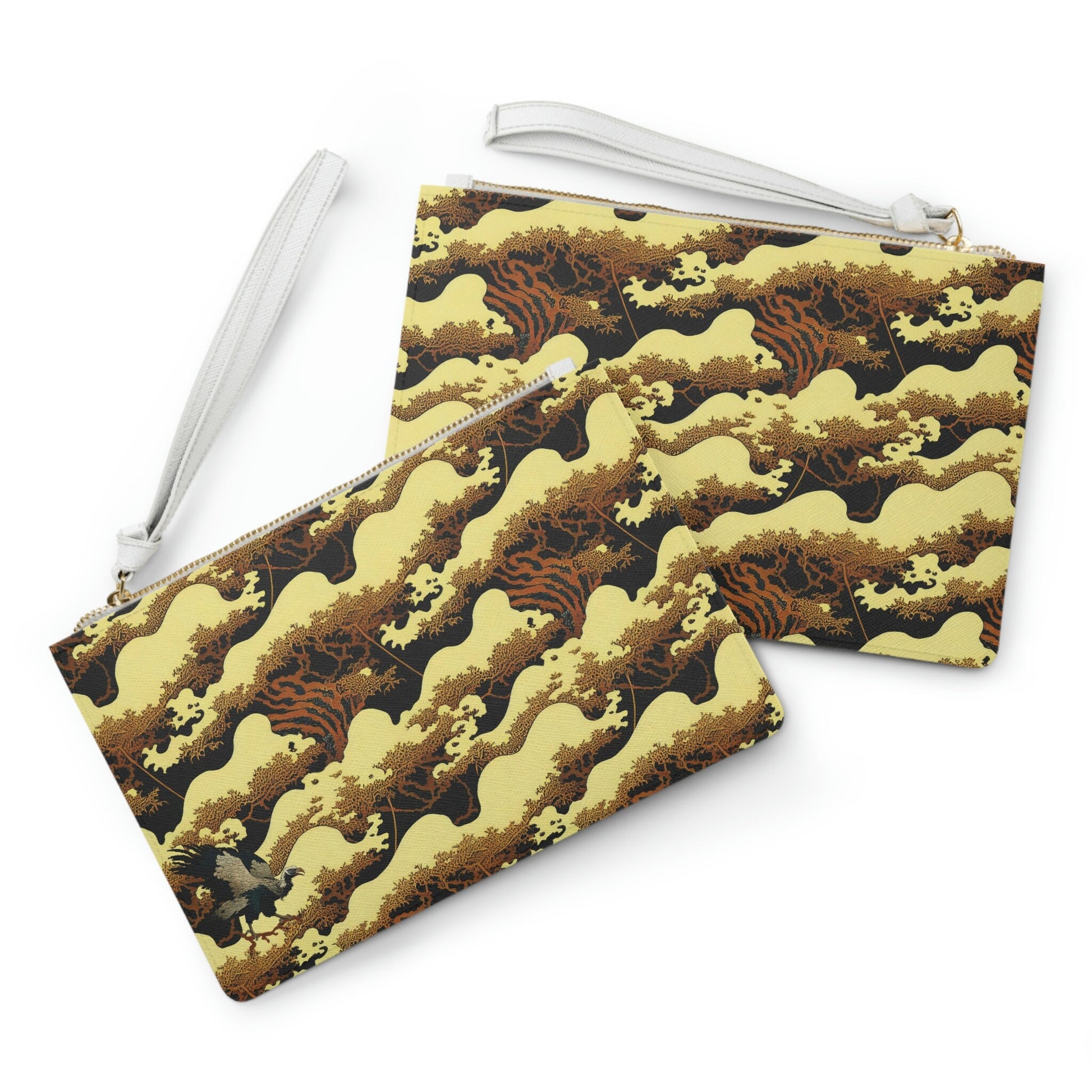Gold Clutch Bag For Women, Small Forest Vulture Wedding Clutch, Vegan Leather Make Up Bag, Clutch Bag Gift For Woman