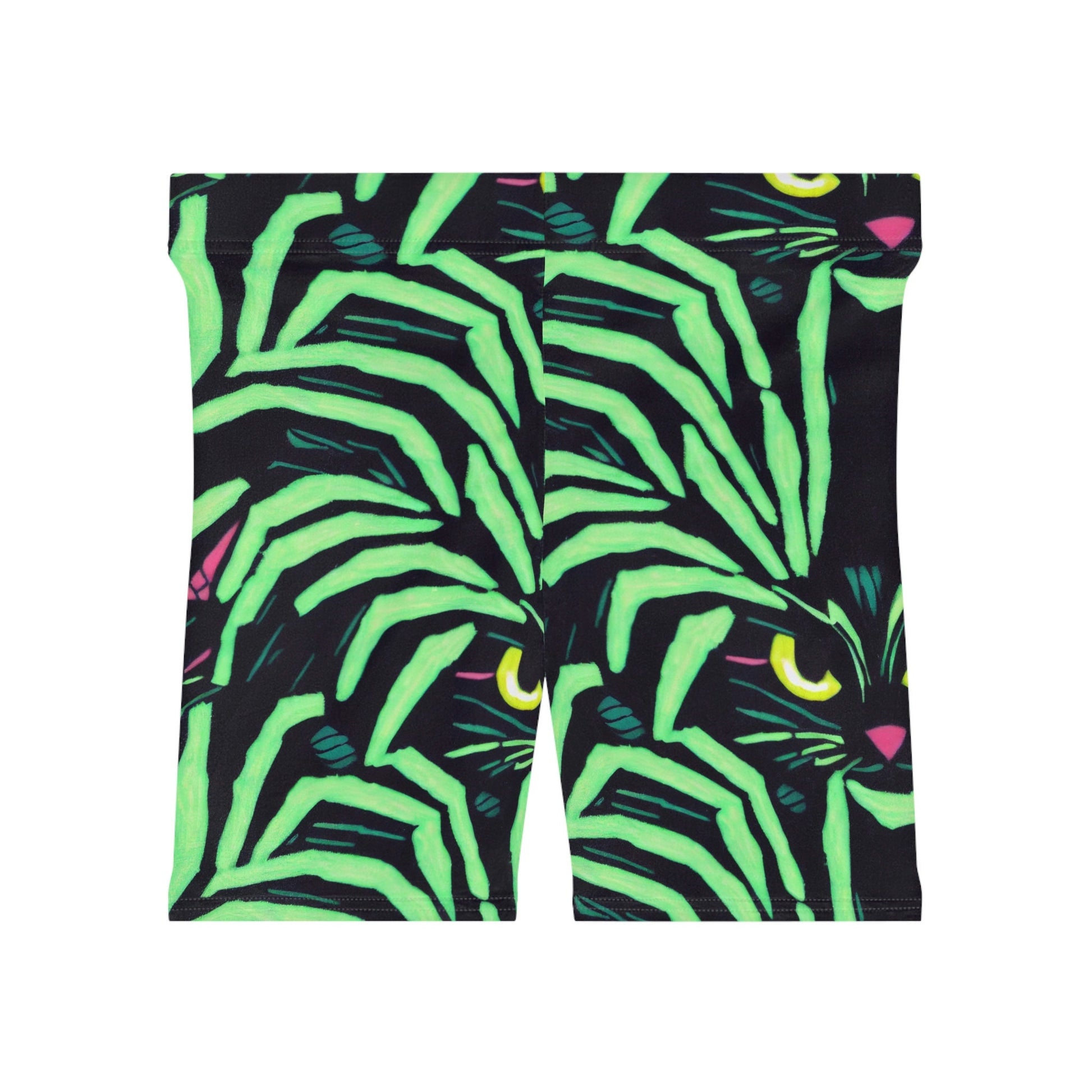Green Pattern Yellow Eyed Cat Women Biker Shorts are a good fit for a workout and suitable for all types of exercising.
