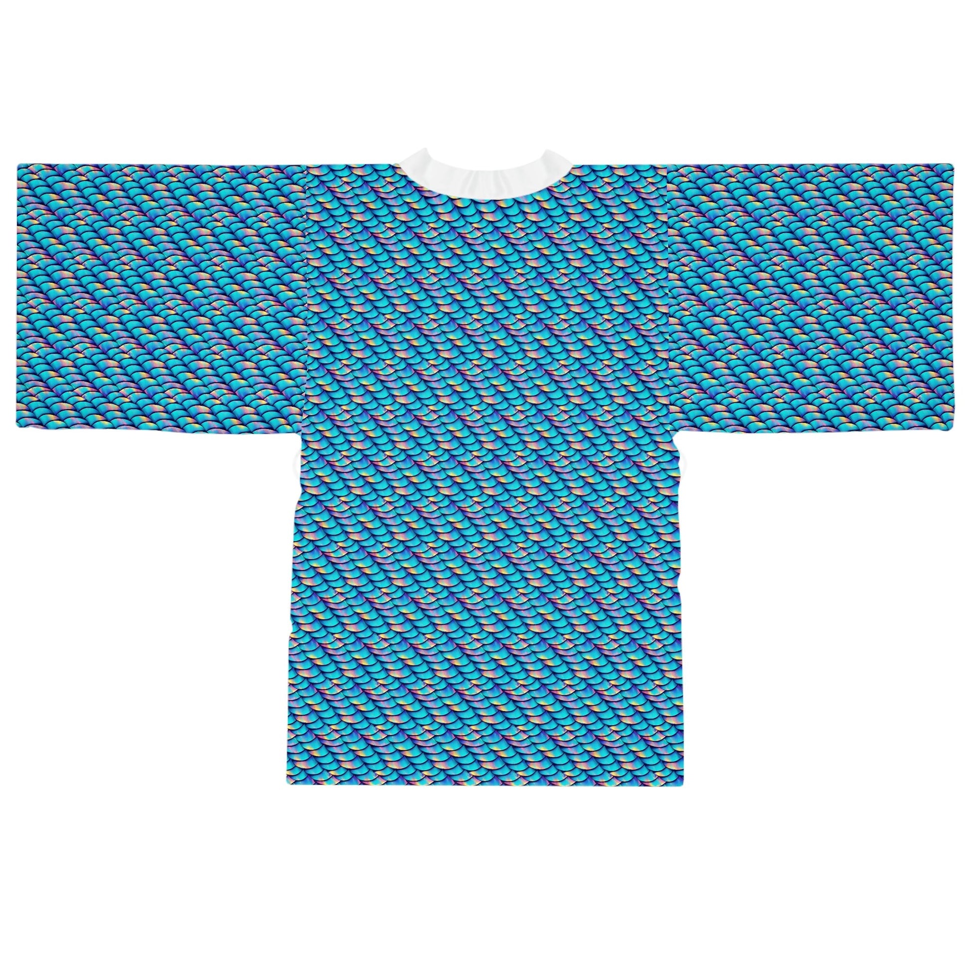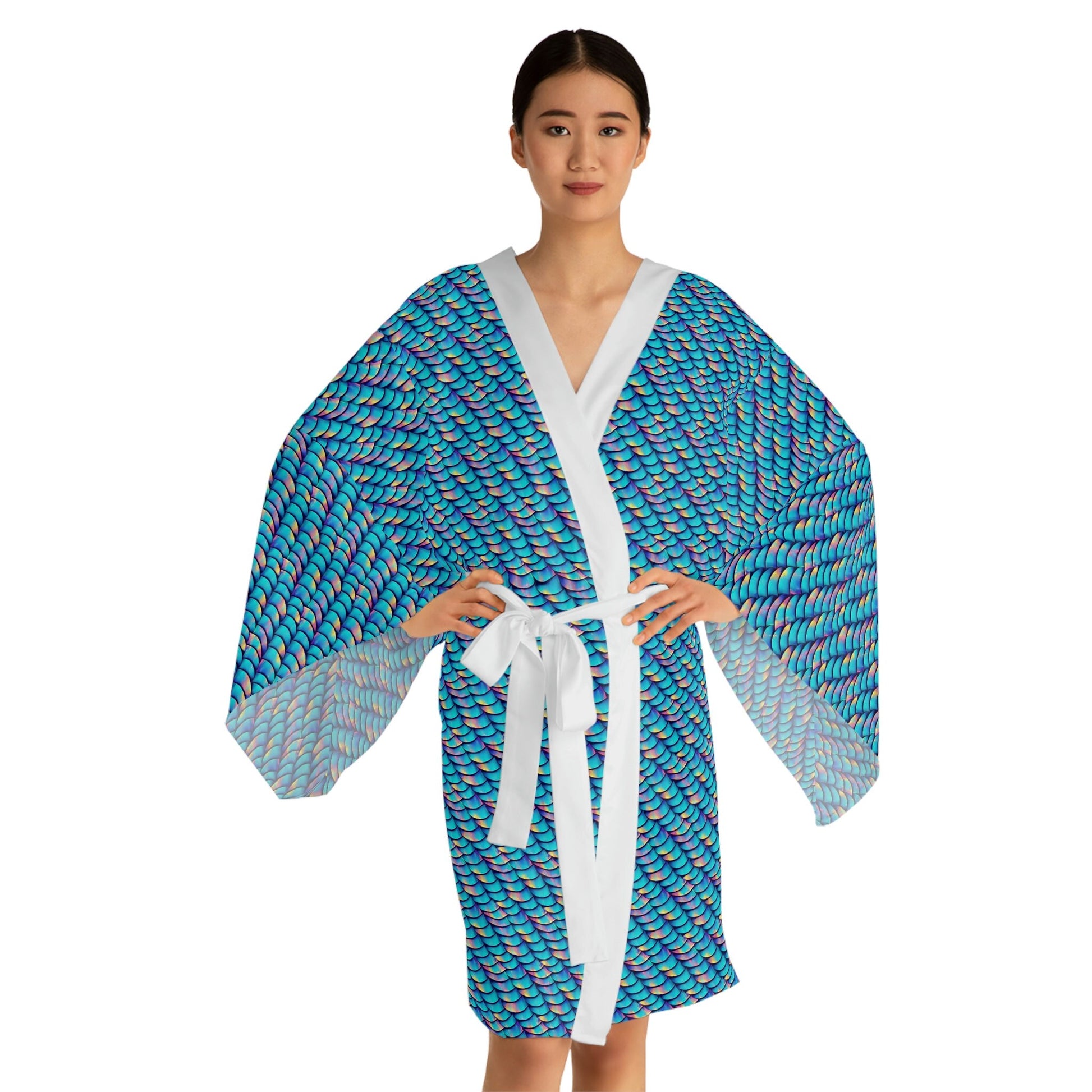 Iridescent Scales Long Sleeve Kimono Robe, Mermaid Clothing Boho Kimono Robe, Japanese Kimono Robe for Women, Mermaid Kimono
