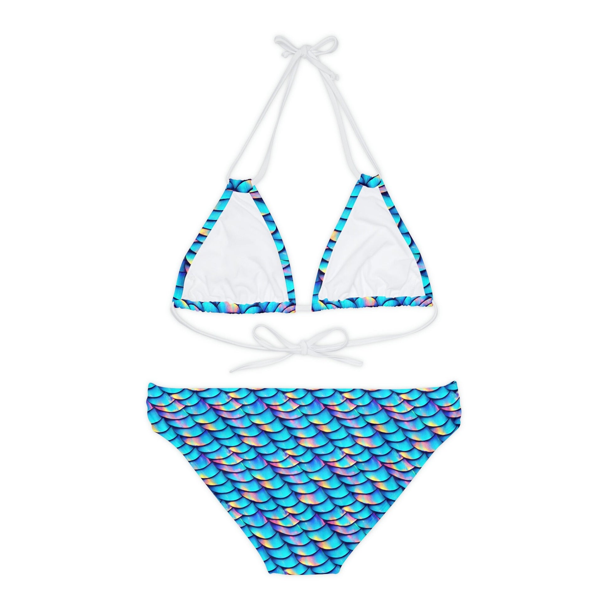 Iridescent Scales Strappy Bikini is made with recycled fabrics so you can feel good about your purchase! This String Bikini Set has pads that can be removed easily and is high-rise so you can feel comfortable doing whatever you love.