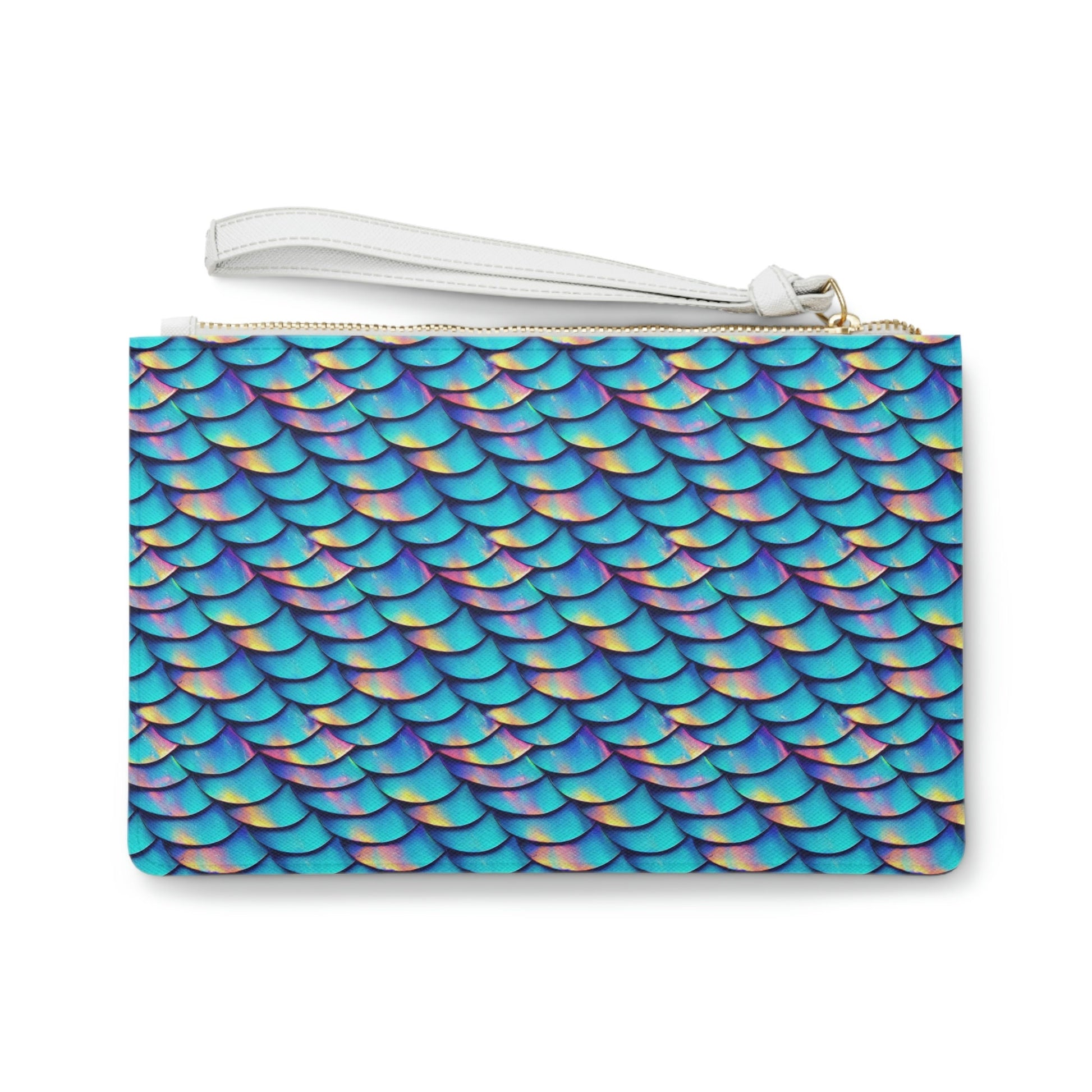Mermaid Scales Clutch Bag, Vegan Leather Zipper Bag, Bridesmaid Clutch, Bachelorette Bag For Women, Cosmetic Bag