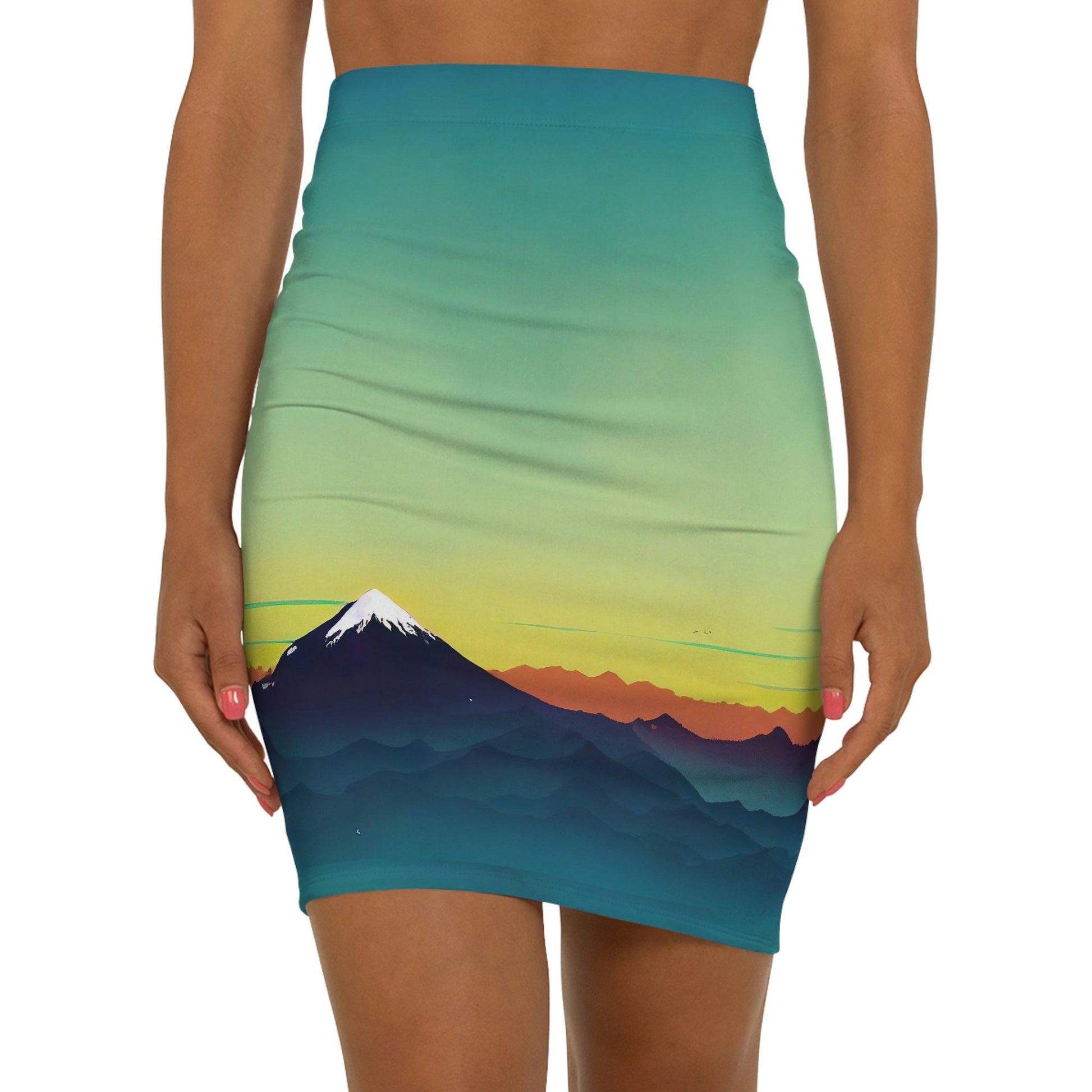 Mountain Sunrise Skirt, High Waist Summer Skirt, Cute Designer Skirt, Women's Mini Skirt, Pencil Skirts for Women