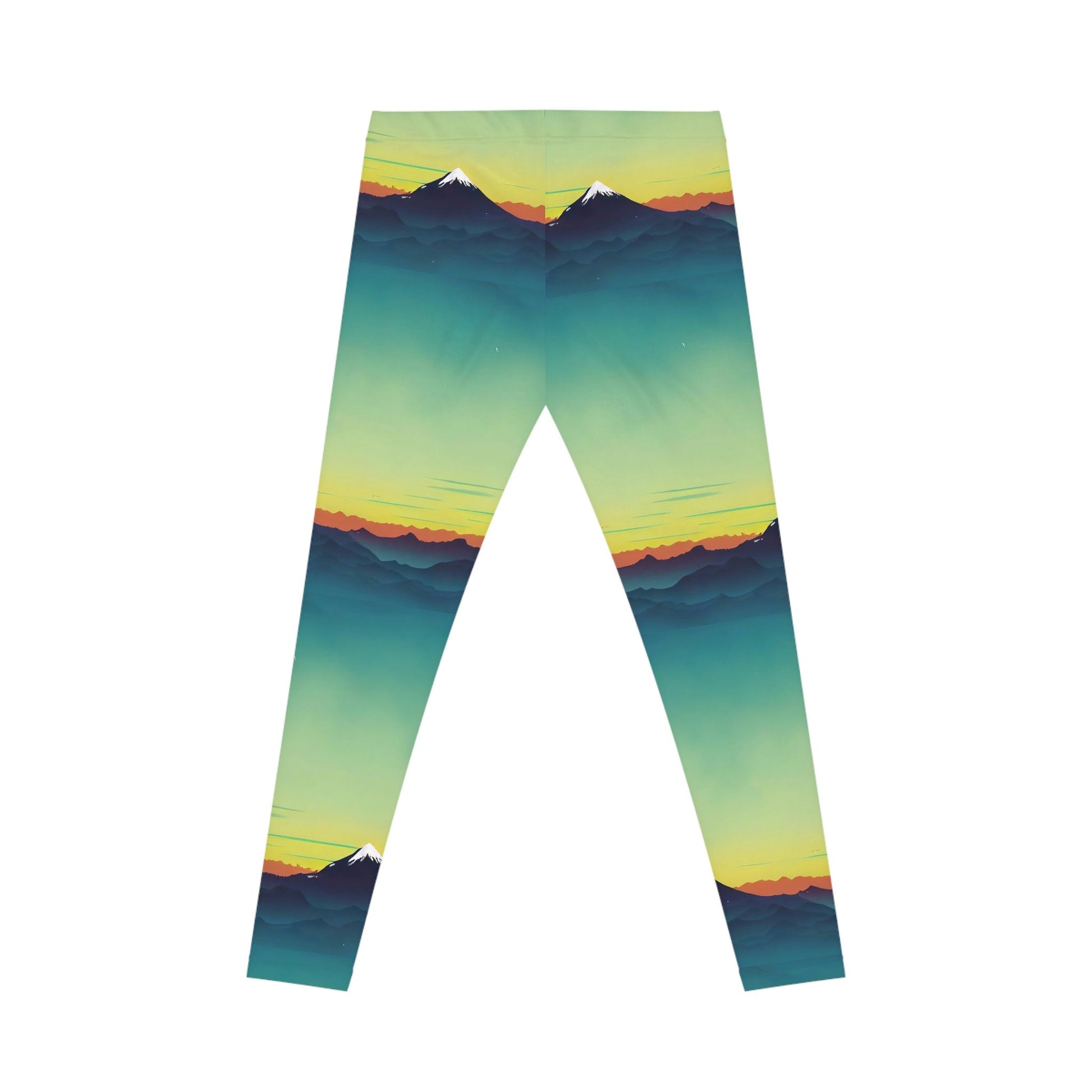 These skinny fitting Mountains Sunrise Women's Yoga Leggings will take you from workout to store run in comfort and style. these leggings provide a soft and stretchy fit that moves with your body for maximum flexibility and comfort. The versatile design makes them perfect for everything from casual wear to fitness activities.
