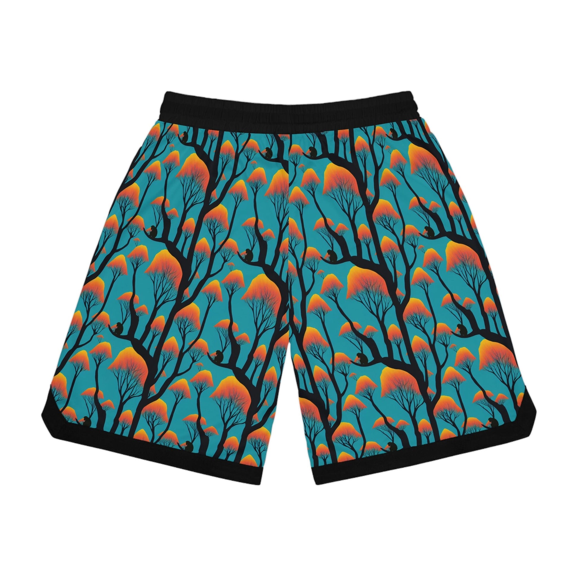 Orange Forest Ape Basketball Shorts, Nature Clothing High Waisted Shorts, Streetwear Graphic Shorts, Athletic Shorts