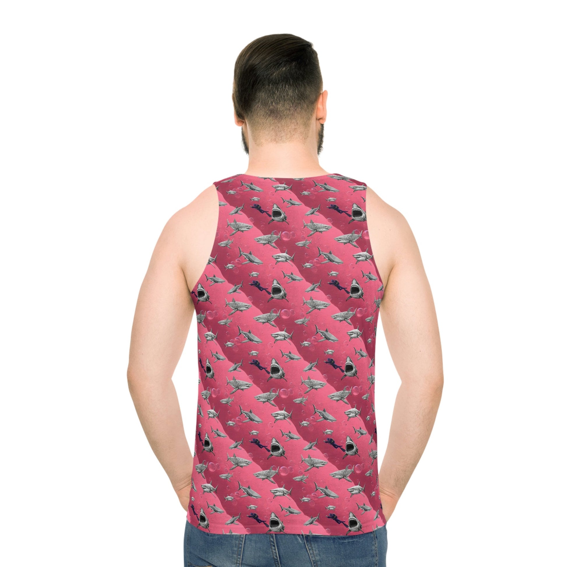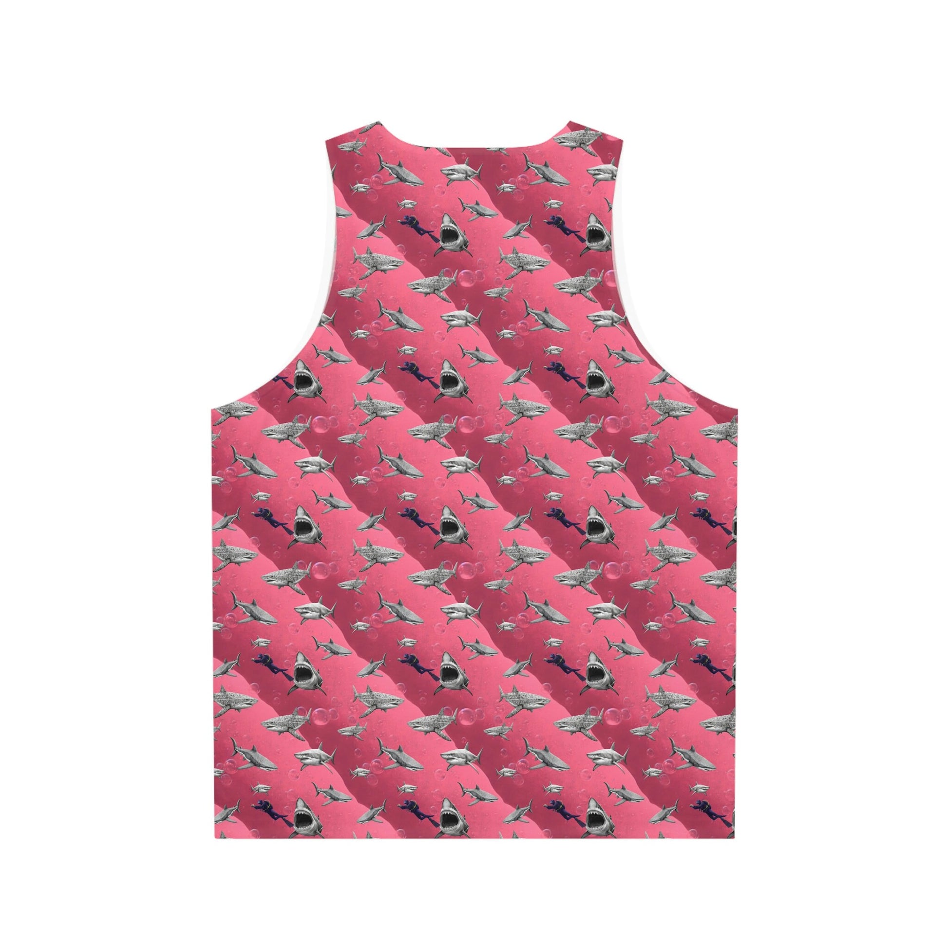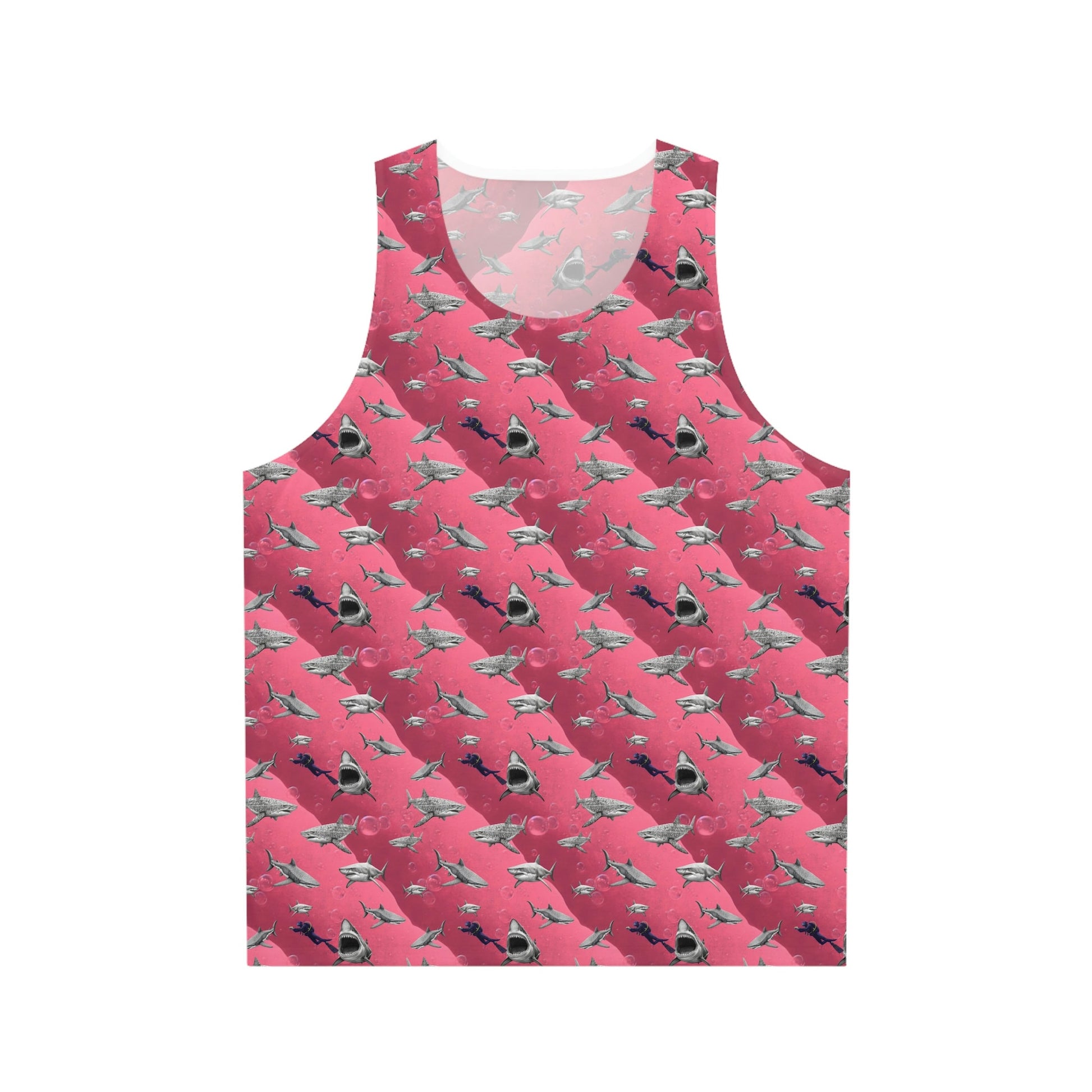 Pink Sea Shark Tank Top, Scuba Diving Muscle Shirt, Summer Workout Tank Top, Pink Fitness Shirt, Sleeveless Shirt, Gym Top