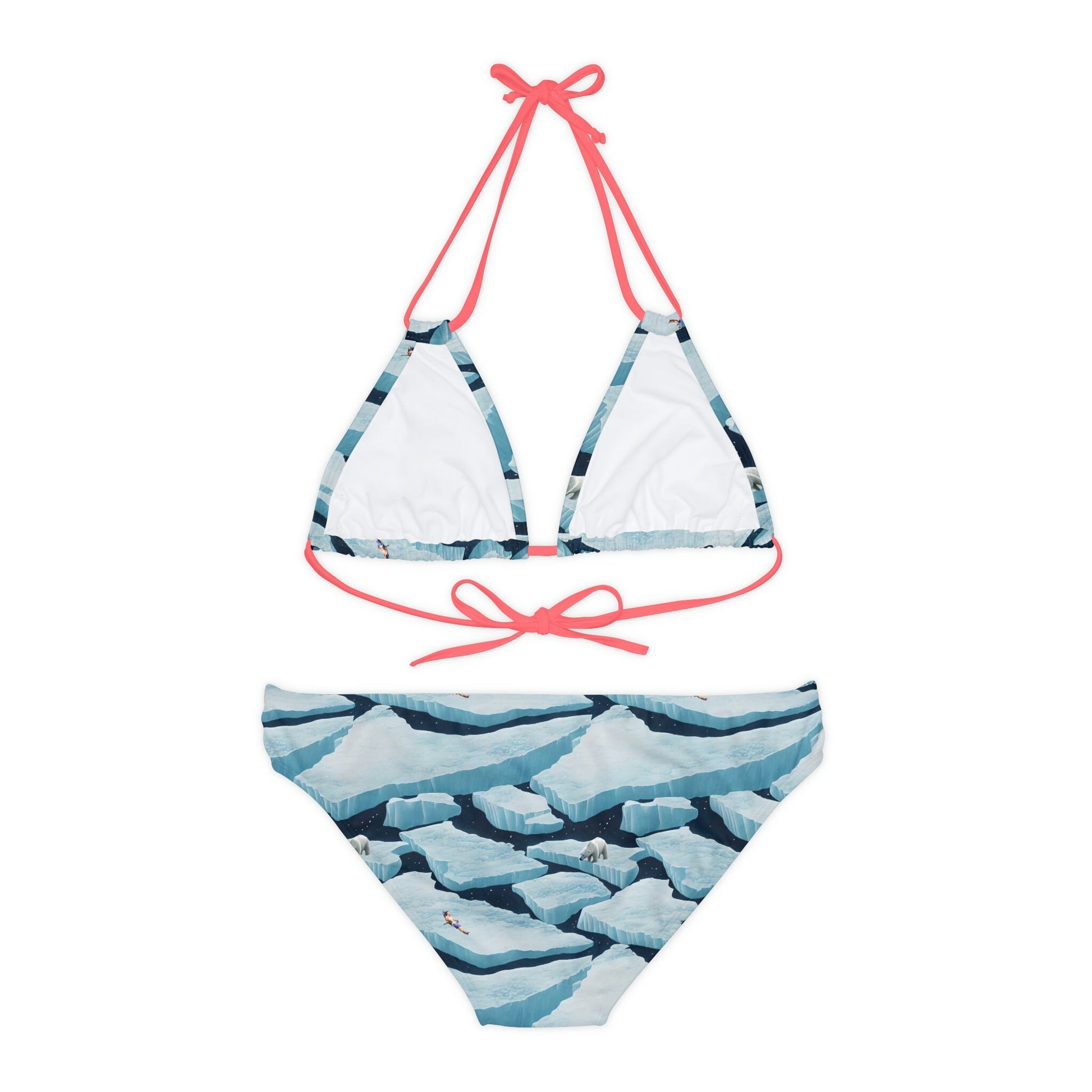 Polar Bear Strappy Bikini, Icebergs High Waisted Bikini, Striped Teen Bikini, String Bikini Set, Handmade Bikini for Girls