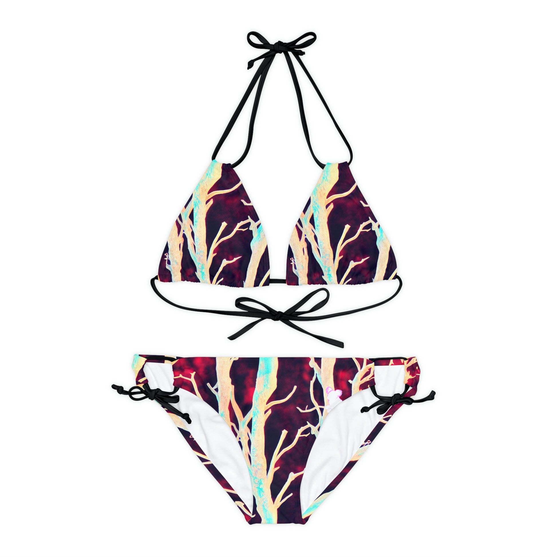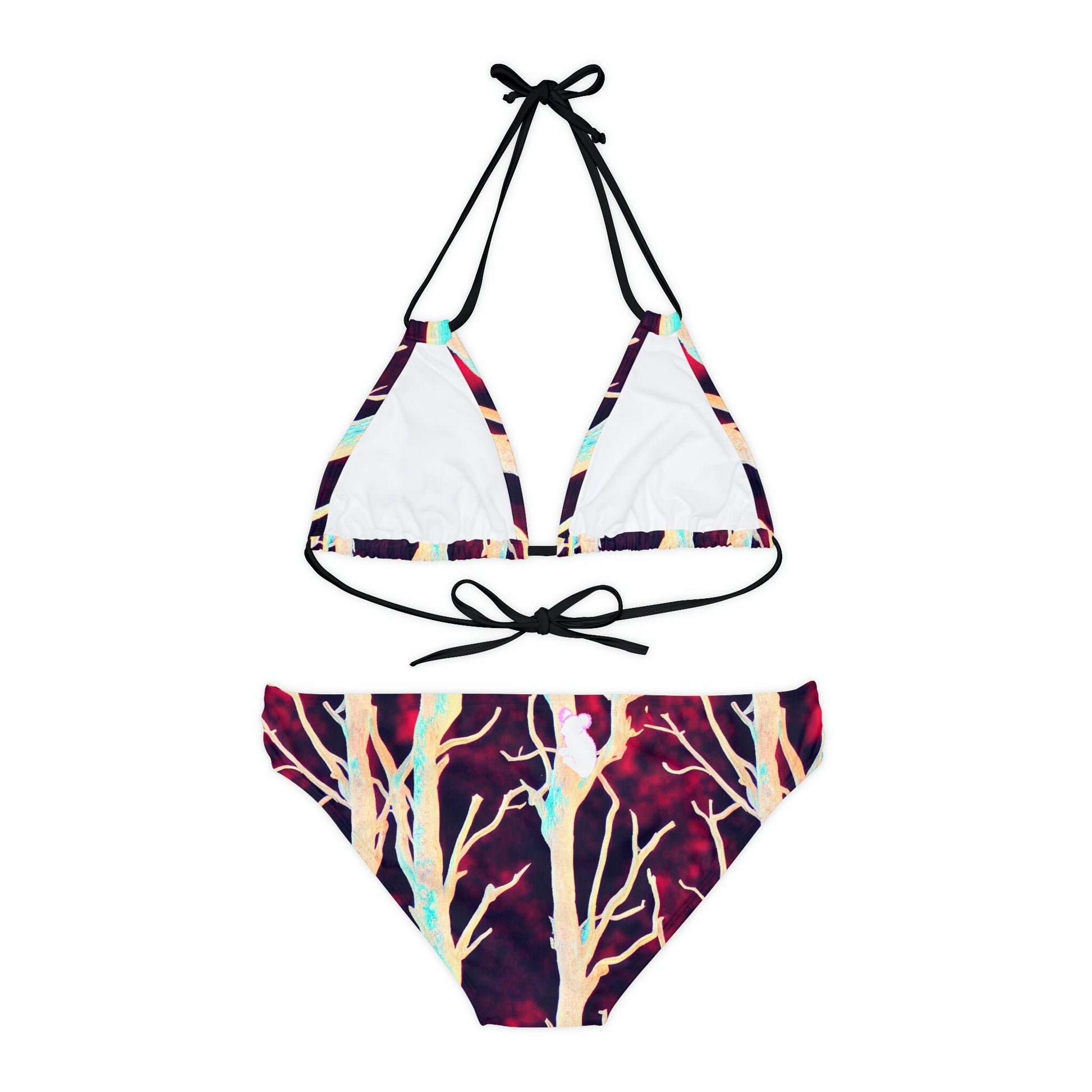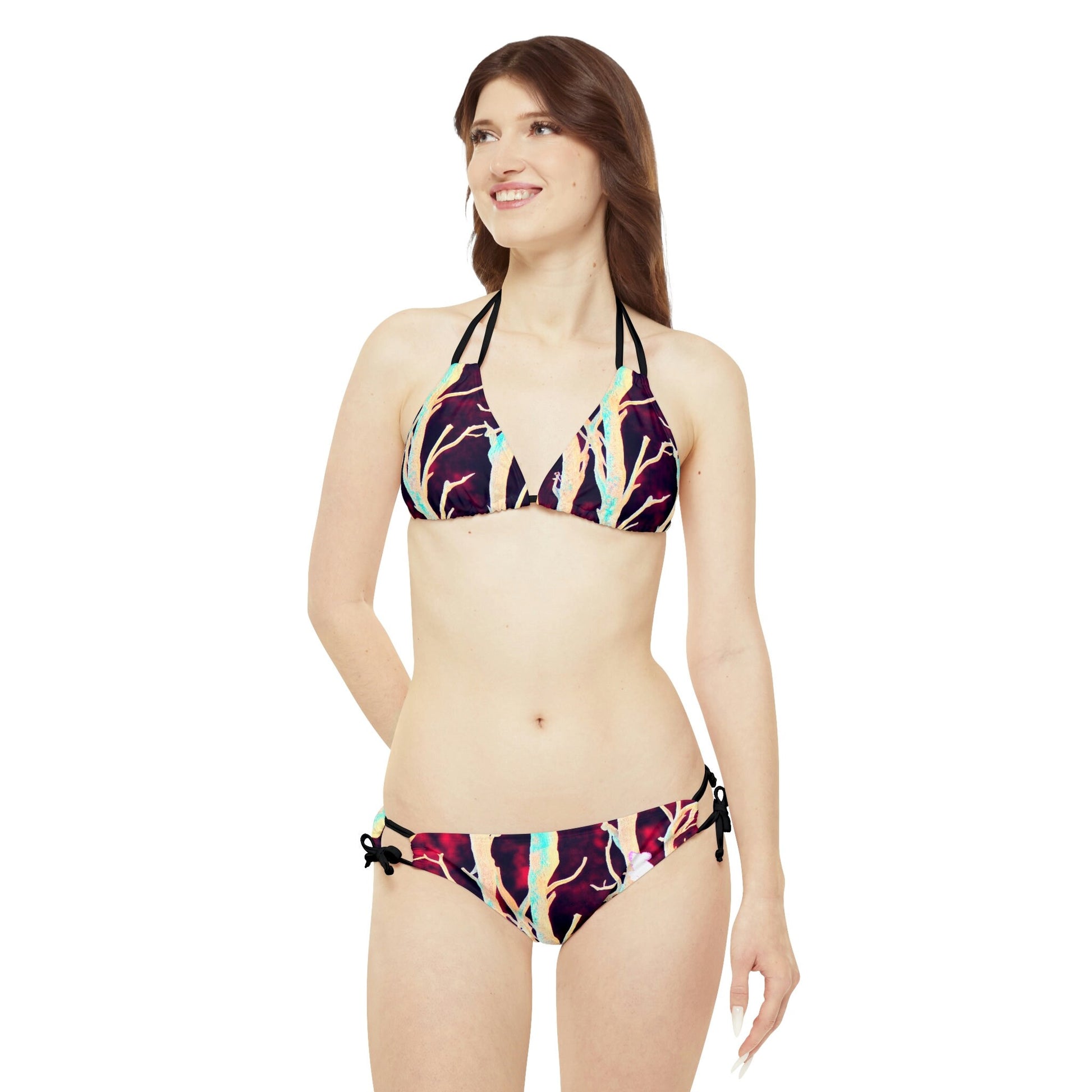 Purple Strappy Bikini Set, Forest Print Sexy Bikini Set, Girls Tiny Bikini, Two Piece Summer Clothing, Gift For Women