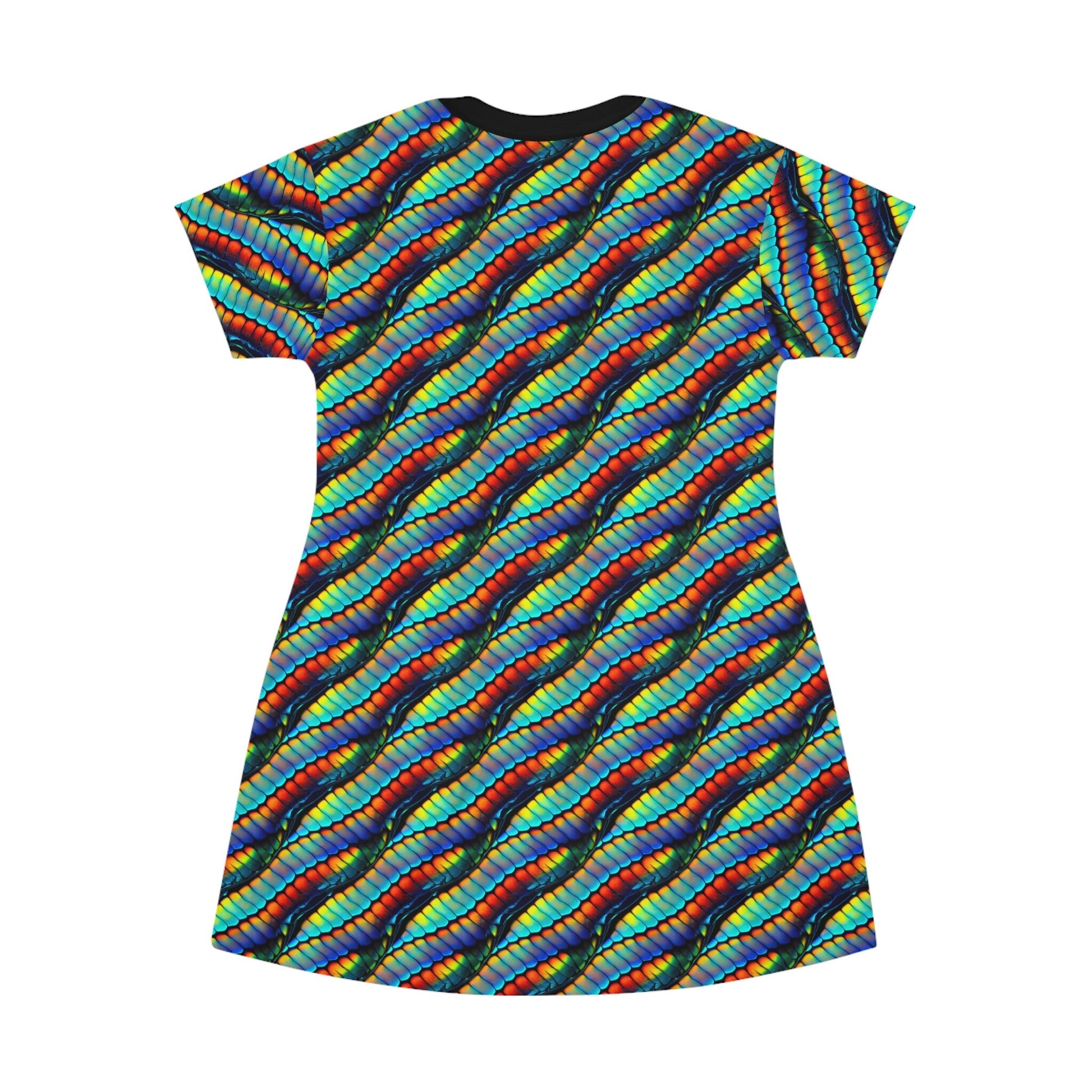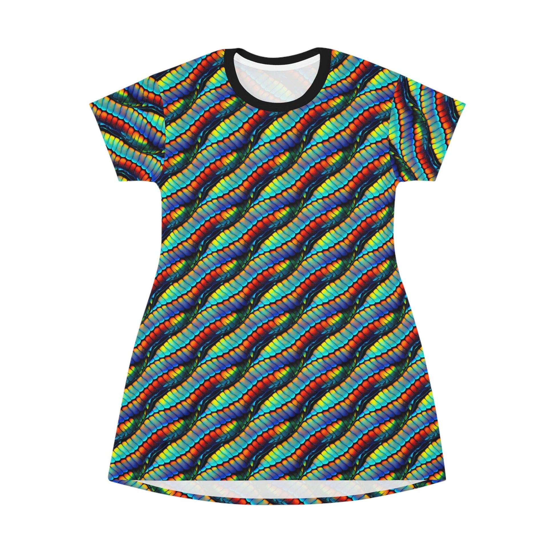 Rainbow Shirt Dress, Colorful Scales Oversized Women Tshirt Dress, Short Sleeve Rainbow Dress Women, Summer Clothing