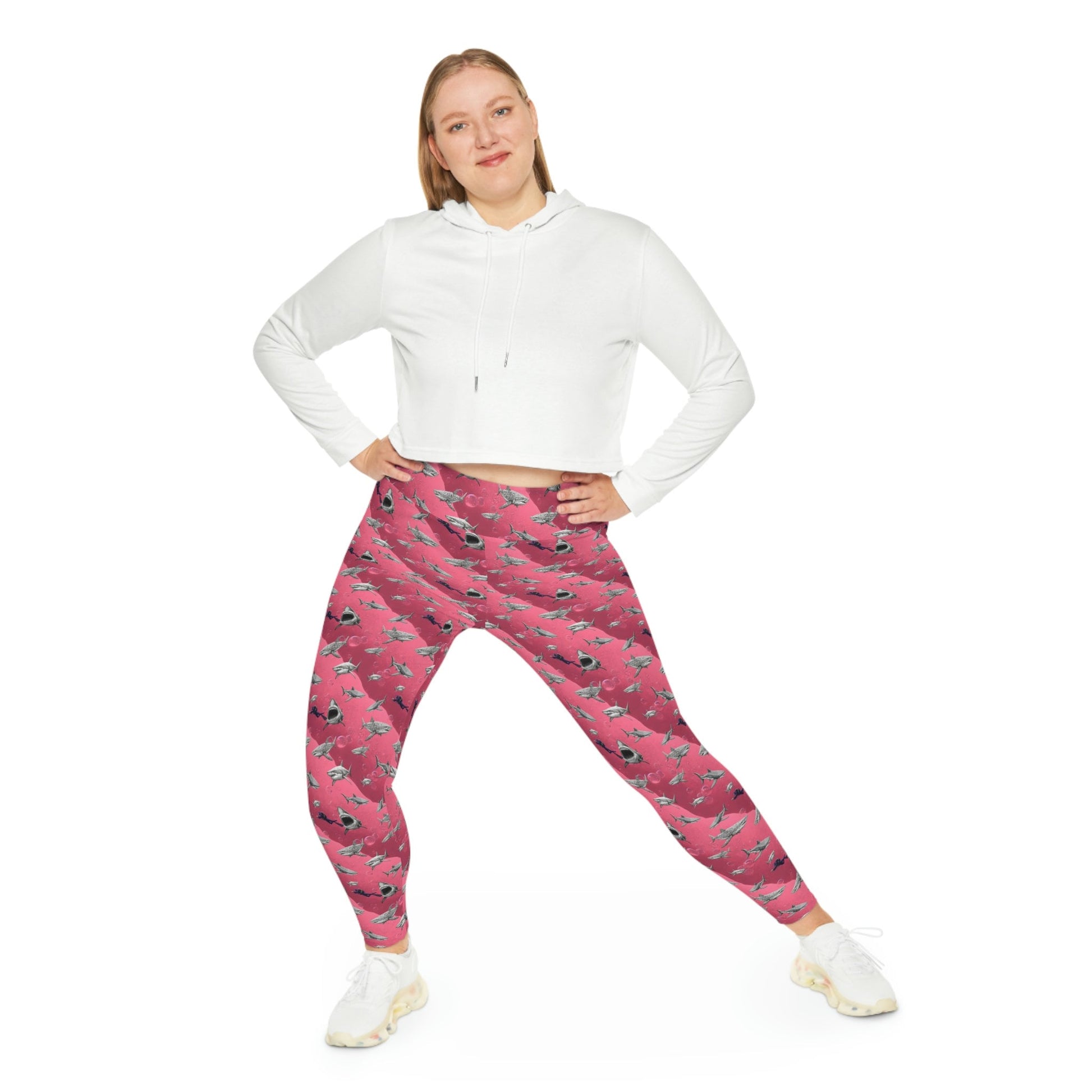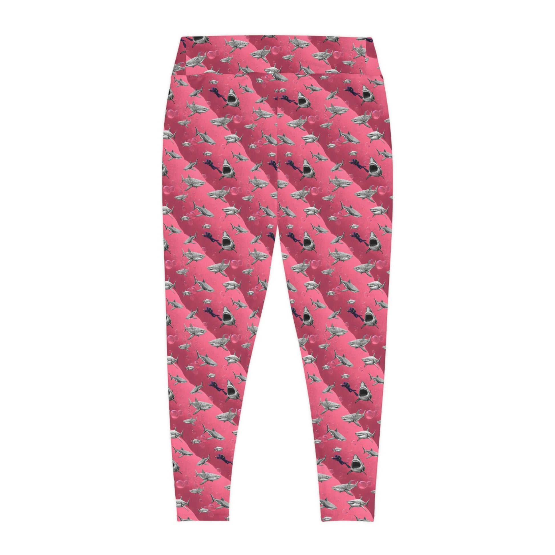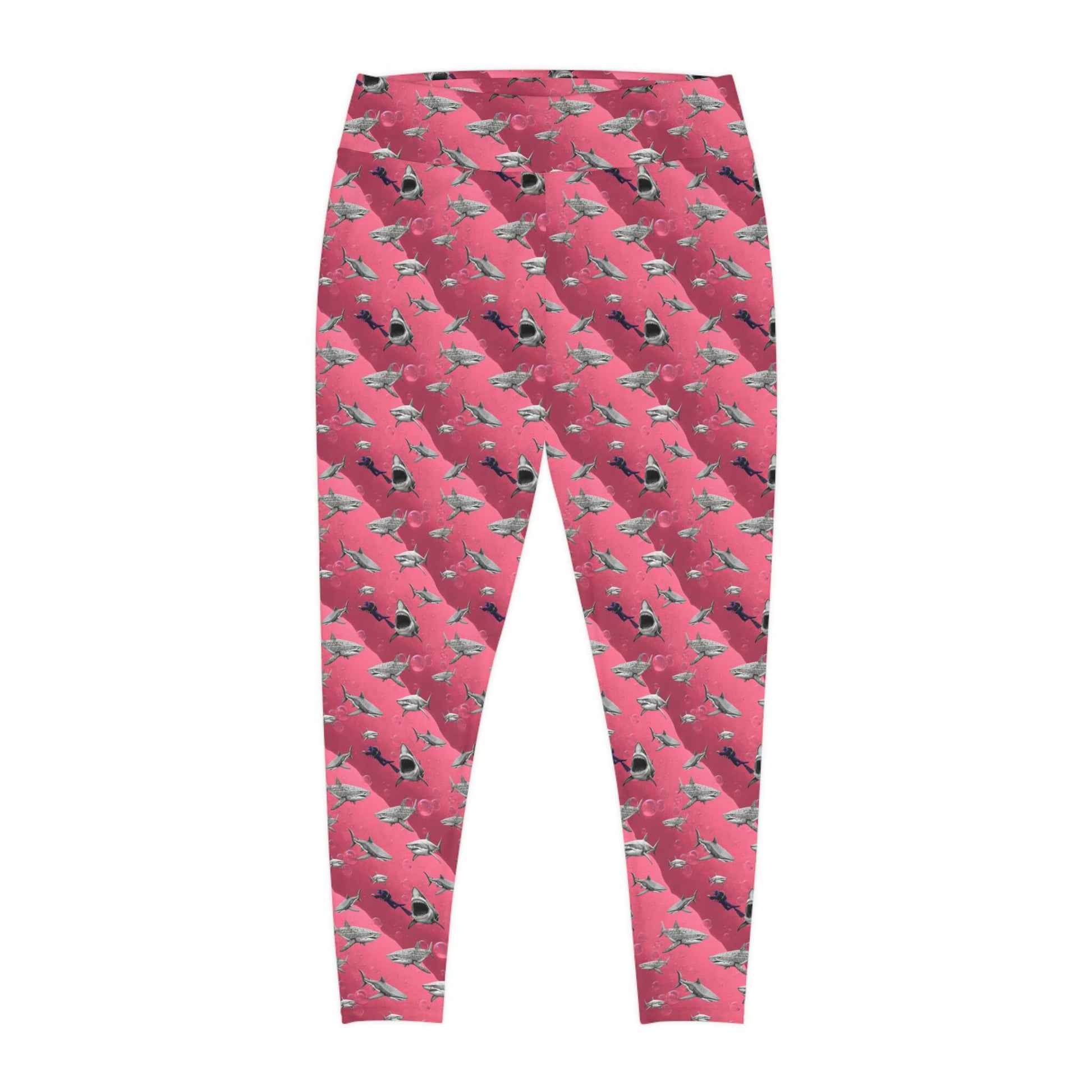 Shark Pink Sea Plus Size Leggings, Scuba Diving Printed Leggings, Swim Leggings, Yoga Fitness Leggings, Gym Leggings