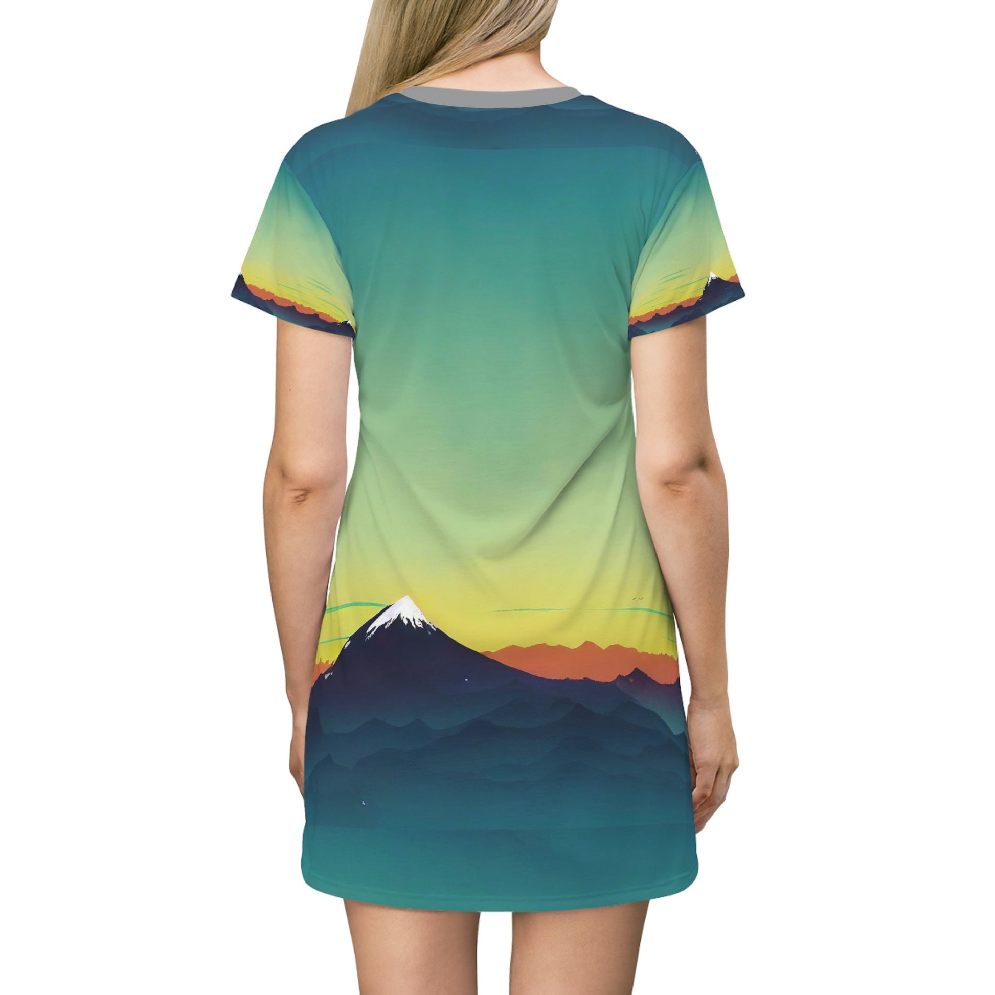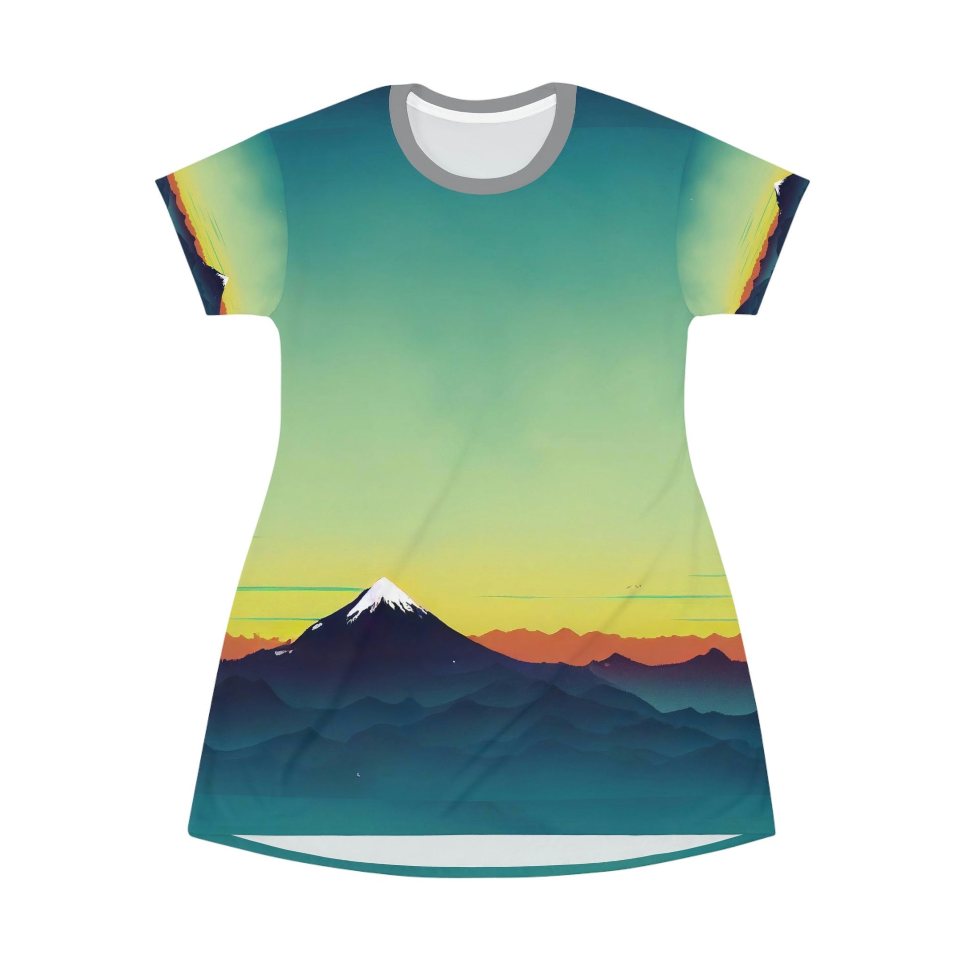 Sunrise Print Mountain Shirt Dress, Aesthetic Women Tshirt Dress, Oversized Summer Shirt, Graphic Comfy Shirt Dress